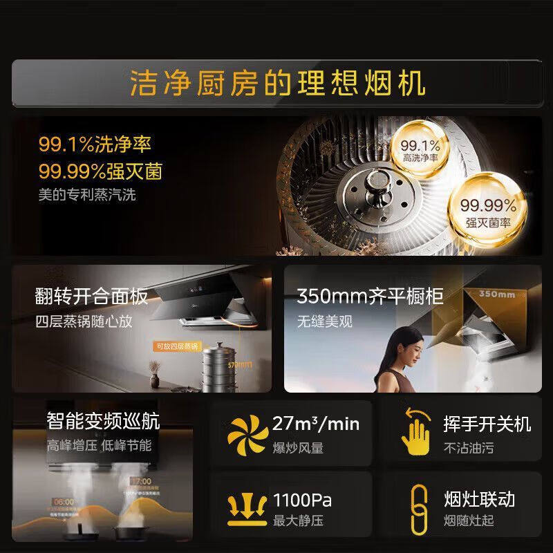 为您提供商品美 MINI 侧吸抽吸油烟机蒸汽洗27风量1100pa家用厨房大吸力AK7的详细介绍,