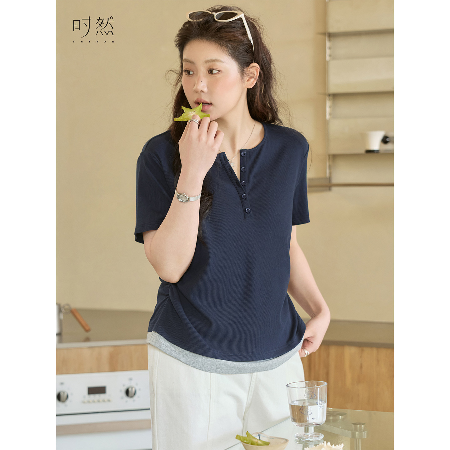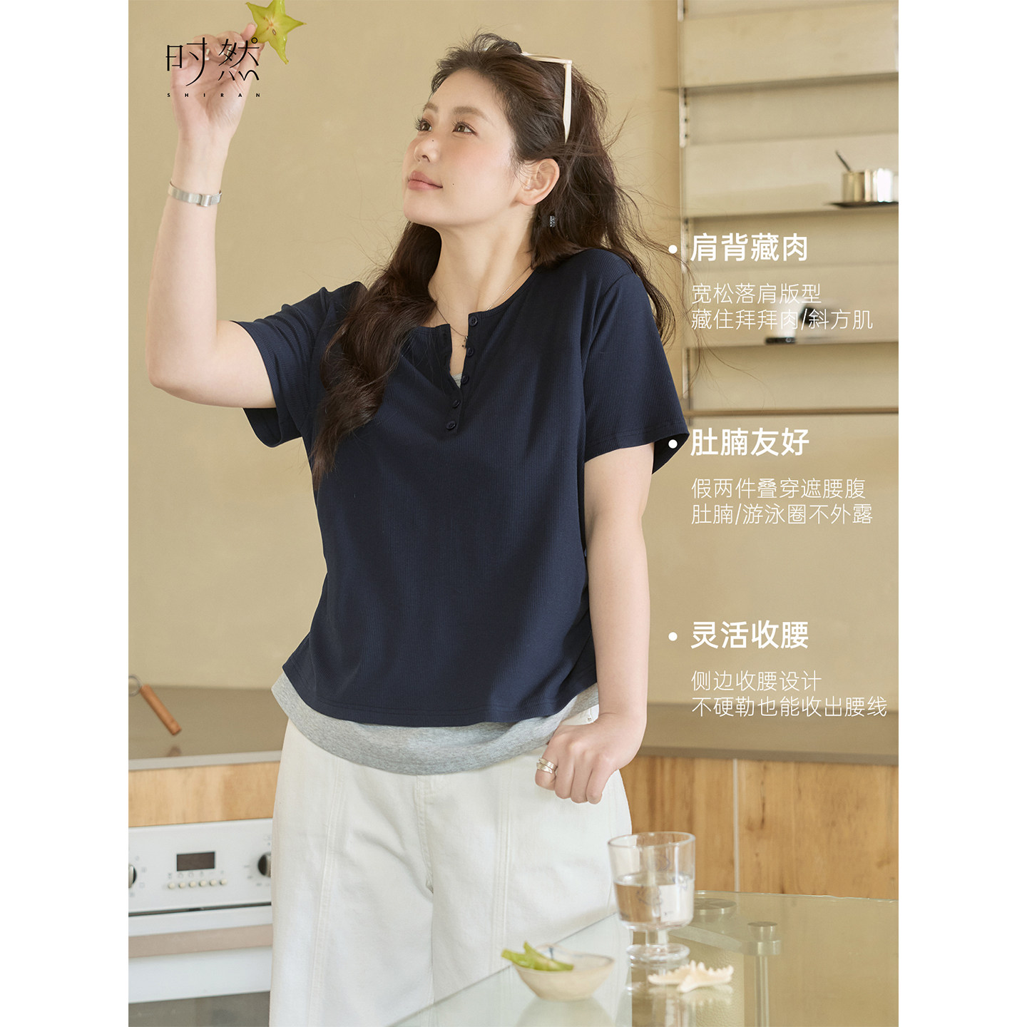 为您提供商品时然大码 T恤微胖mm夏季 正肩上衣宽松显瘦时尚 新 享利领假两件短袖的详细介绍,
