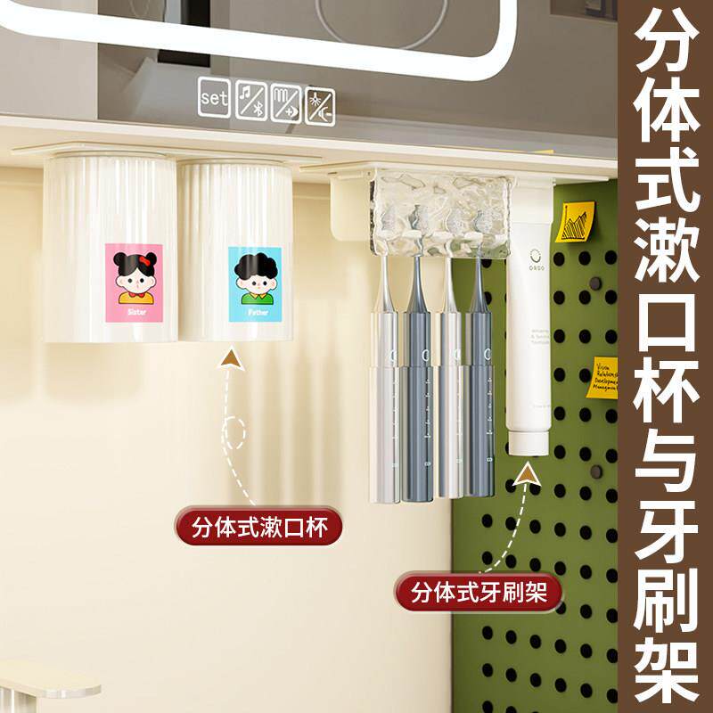 免打孔卫生间牙具座牙膏收纳浴室 牙刷牙杯壁挂置物架电动牙刷套装