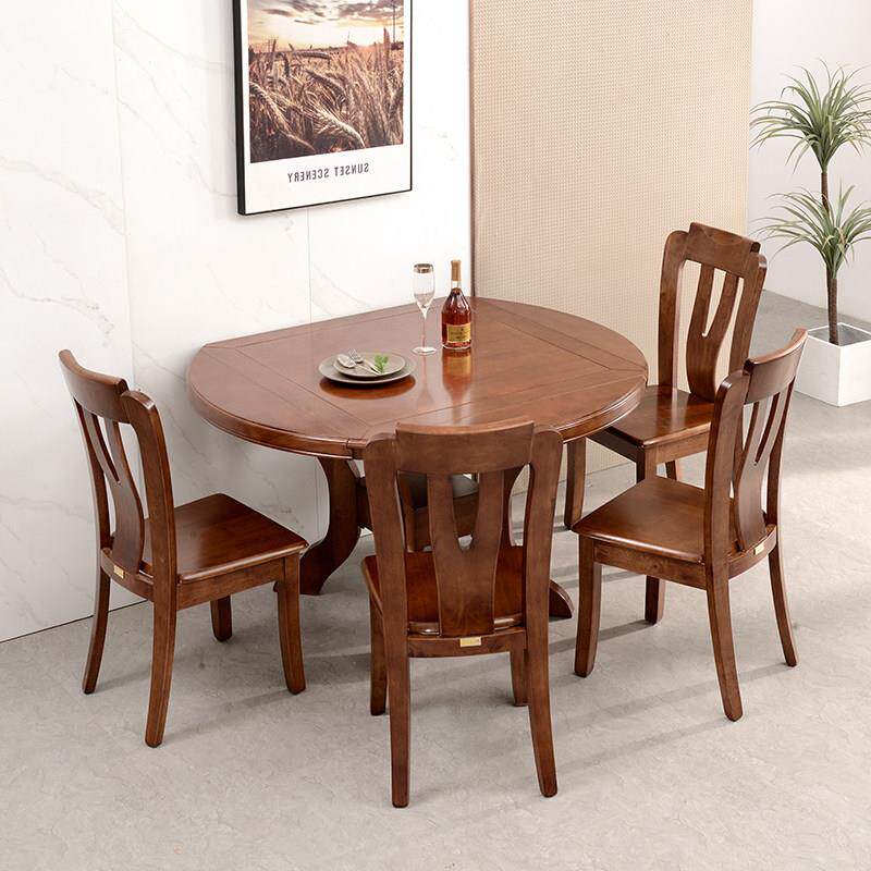全实木餐桌可变圆桌家用圆形可伸缩折叠方桌变大圆桌小户型吃饭桌