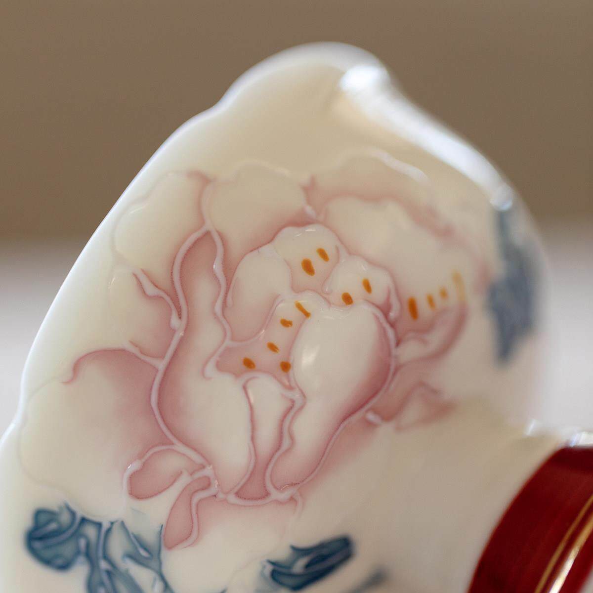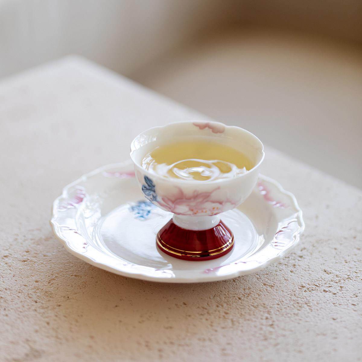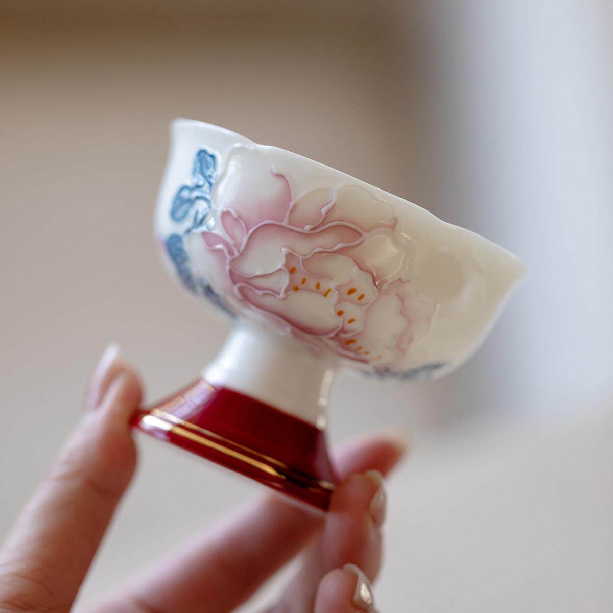 陶瓷高足主人杯手绘牡丹茶杯高档家用杯女士专用红妆品茗杯 梵汝由