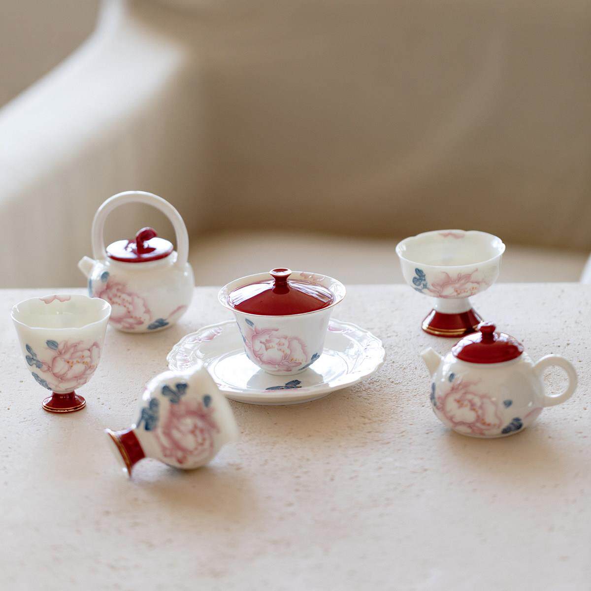 为您提供商品陶瓷高足主人杯手绘牡丹茶杯高档家用杯女士专用红妆品茗杯 梵汝的详细介绍,