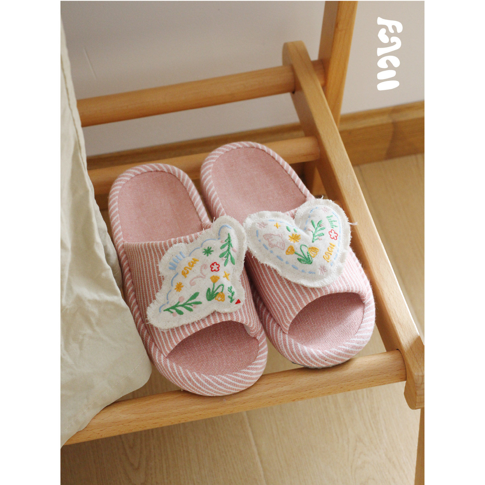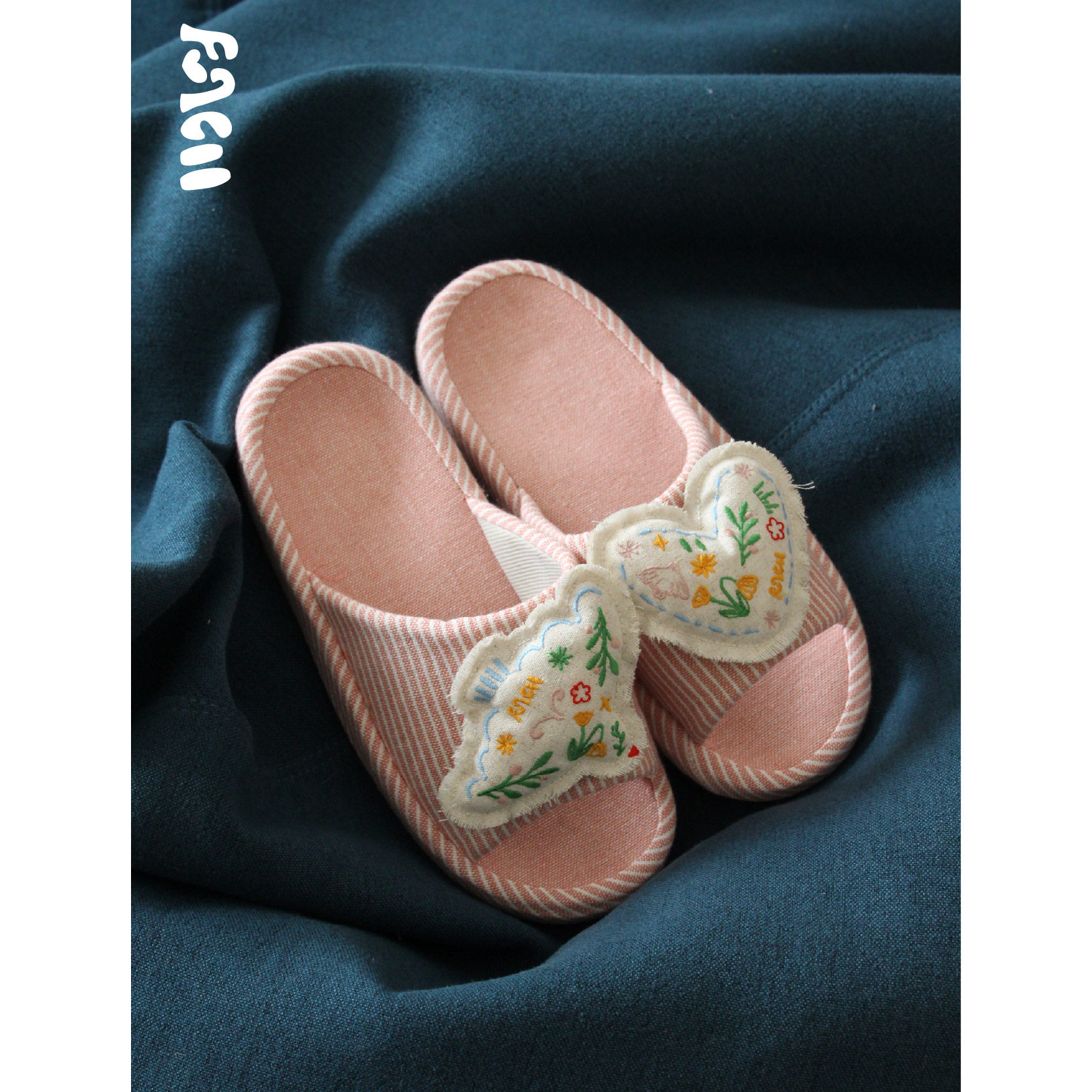 FUNCOO棉麻吸湿透气一字拖鞋 防滑高颜值春款 拖鞋 家居拖鞋