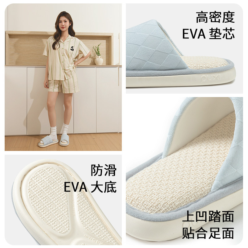 为您提供商品厚底防滑透气静音居家棉拖鞋 朴西2026新款 亚麻拖鞋 女士情侣款 男士的详细介绍,