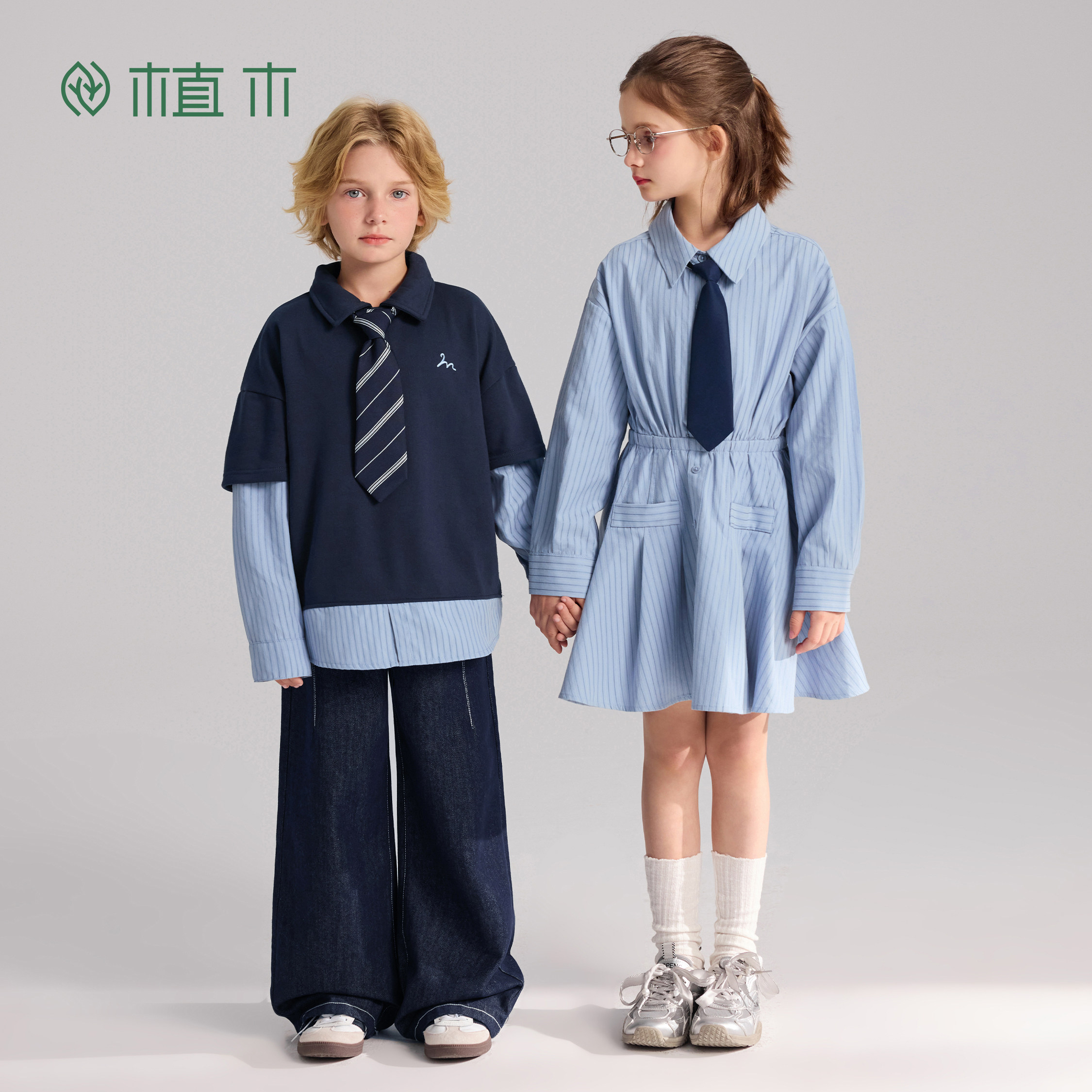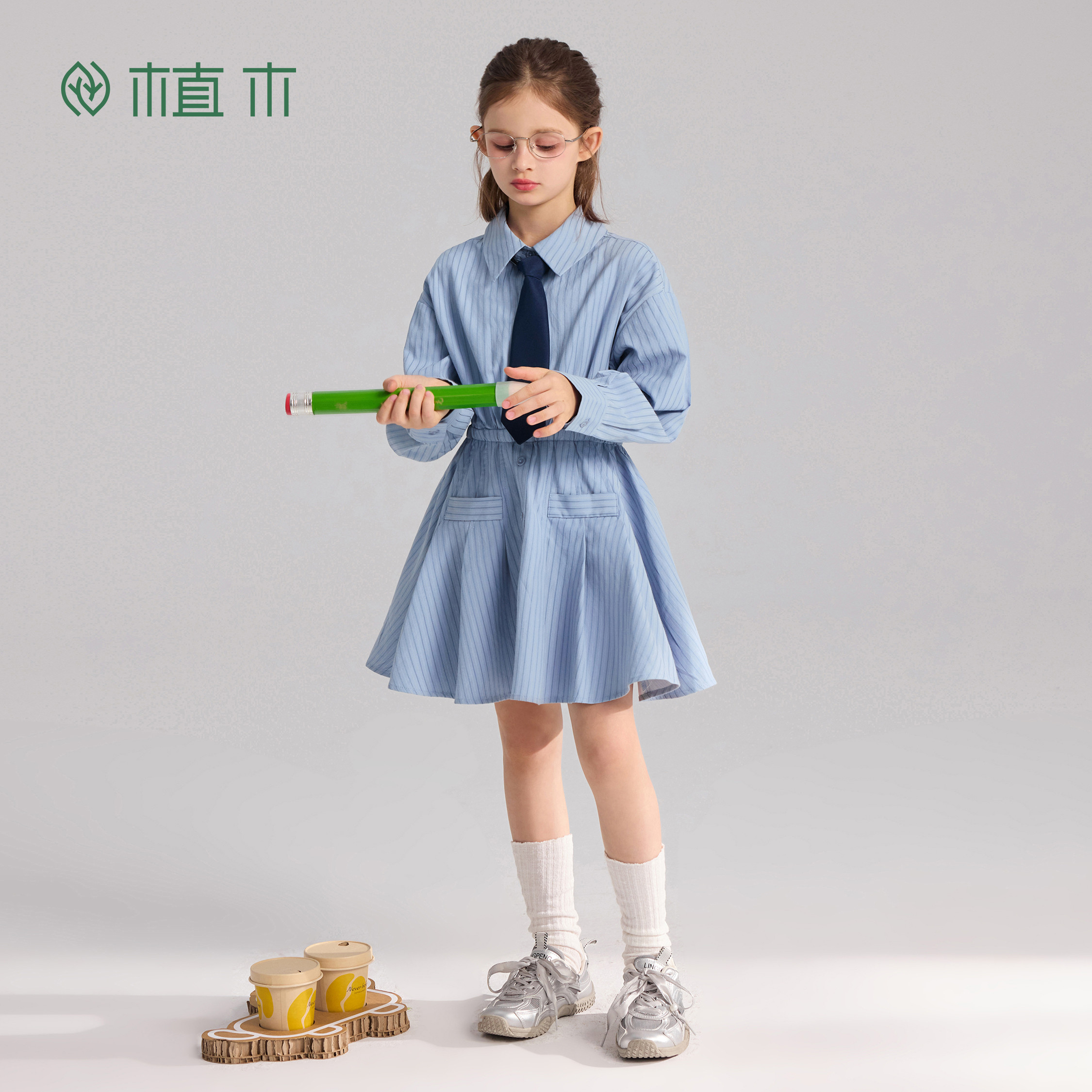 童装 植木 新款 长裙2026年春季 miu系学院风 女童连衣裙儿童衬衫