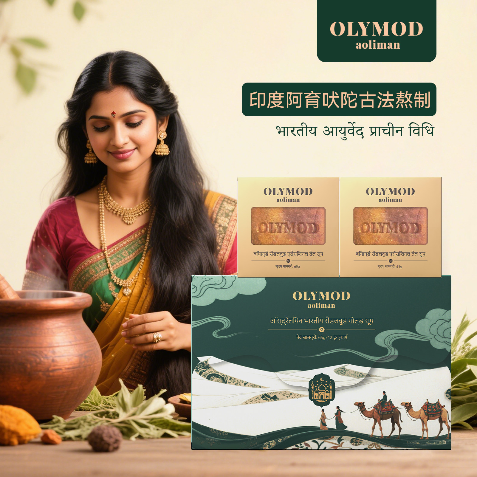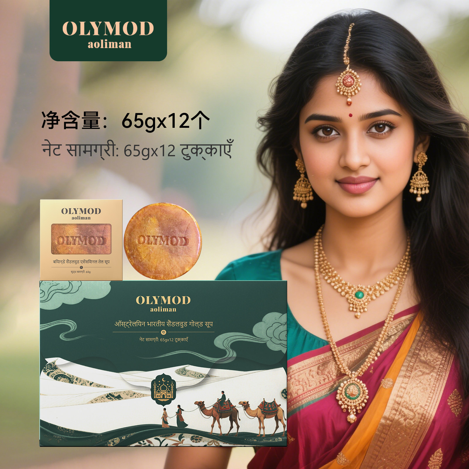 印度OLYMOD澳莉曼原装 礼盒装 送2块正装 试用 进口檀香黄金皂12块由