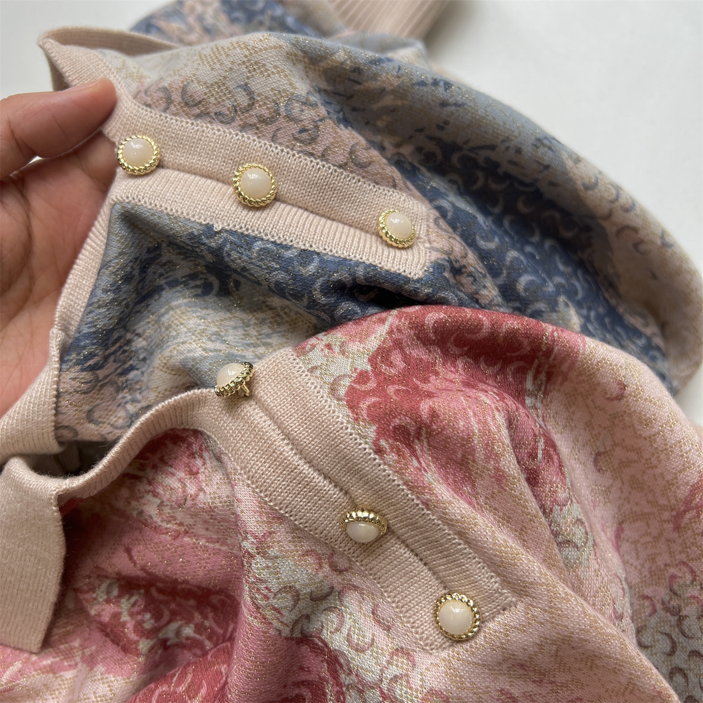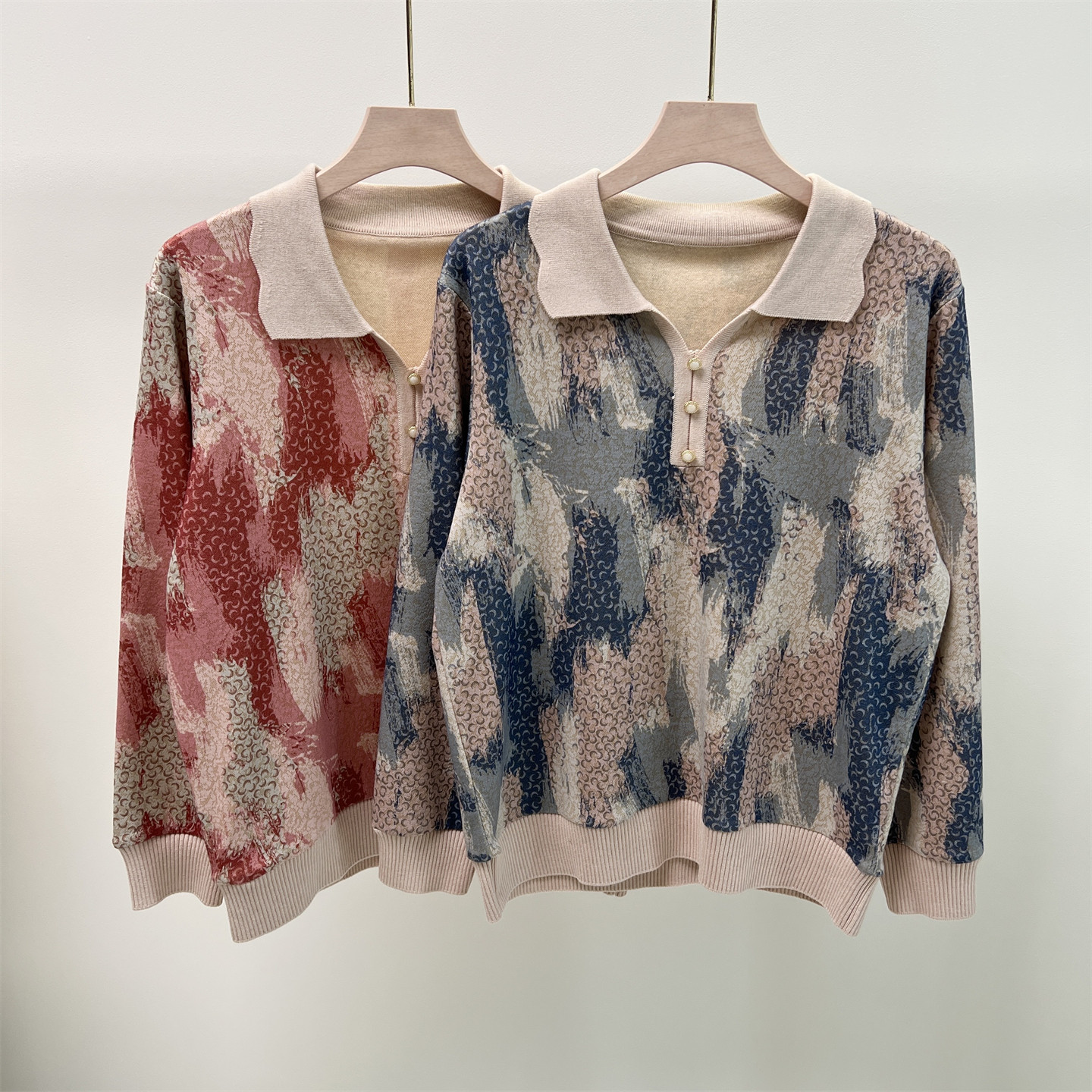 春秋翻领打底衫 2026新款 碎花针织衫 上衣中老年女装 薄毛衣 妈妈春装