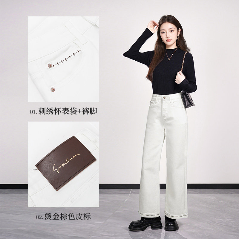 宽松长裤 朵以2025冬季 子女 阔腿裤 刺绣高腰白色牛仔裤 新款 休闲时尚由