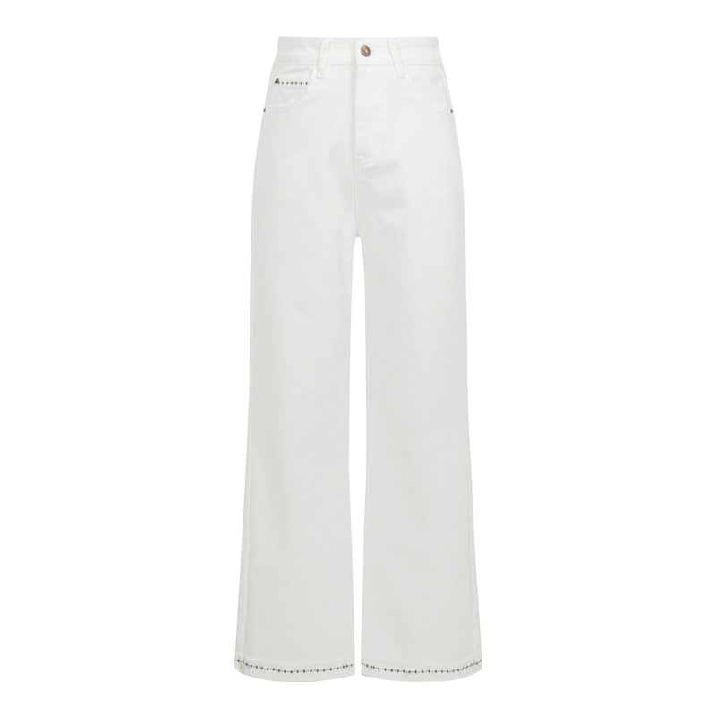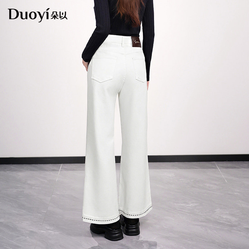 宽松长裤 朵以2025冬季 子女 阔腿裤 刺绣高腰白色牛仔裤 新款 休闲时尚