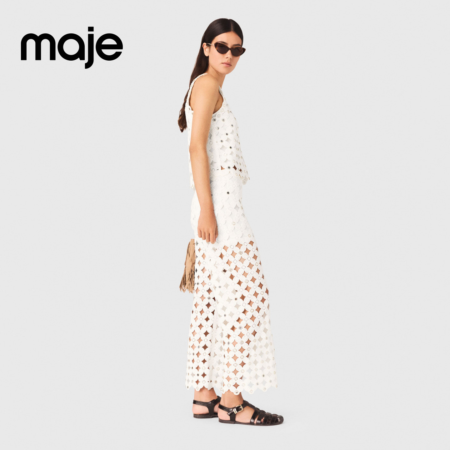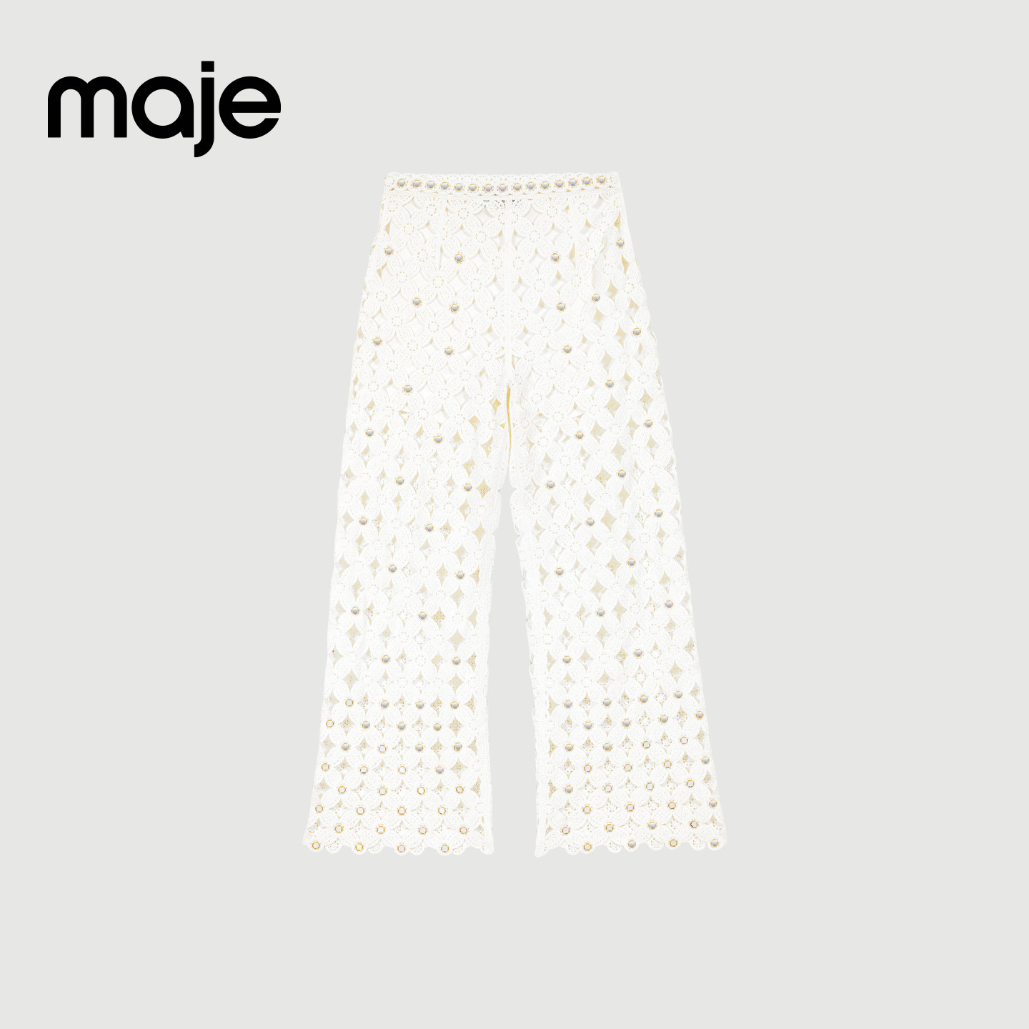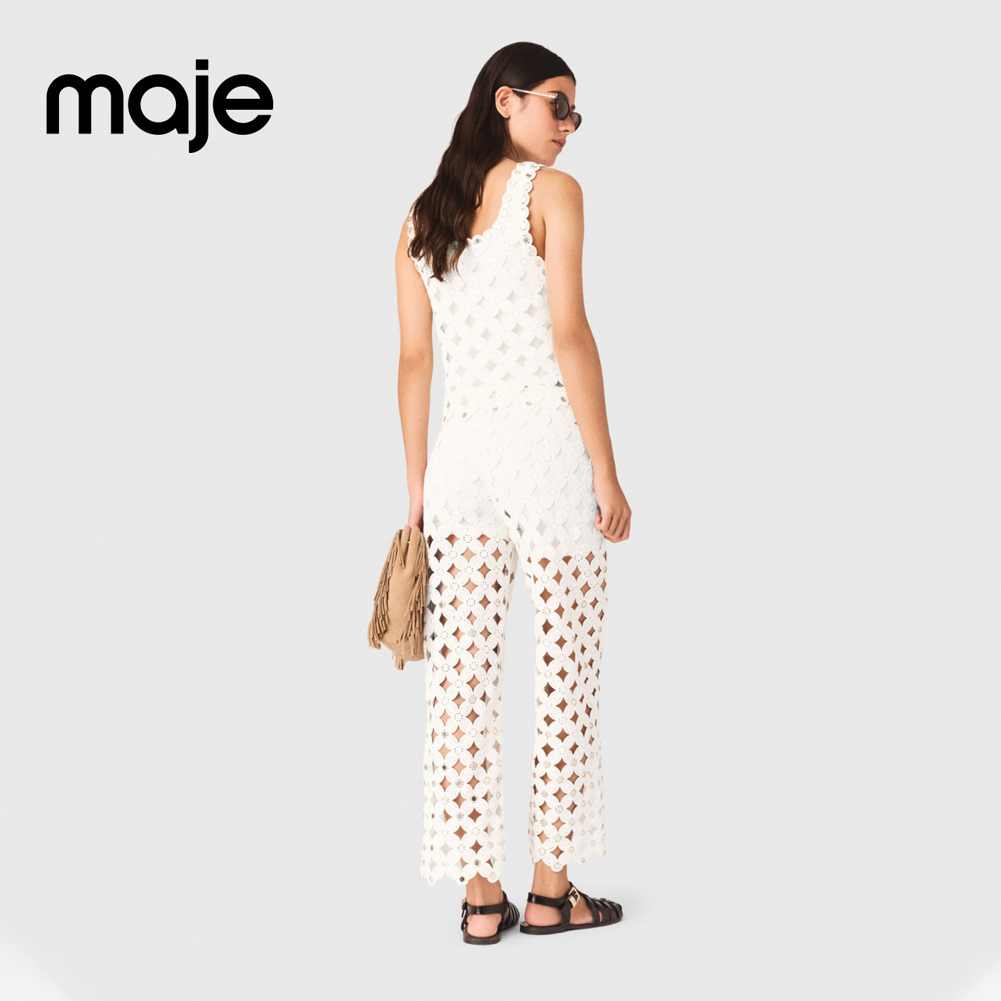 白色钩针镂空直筒休闲裤 王霏霏同款 法式 女装 Maje新品 首发春夏新款