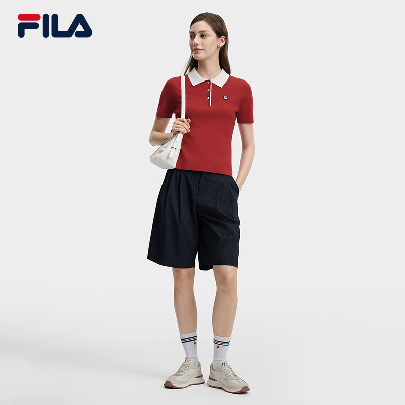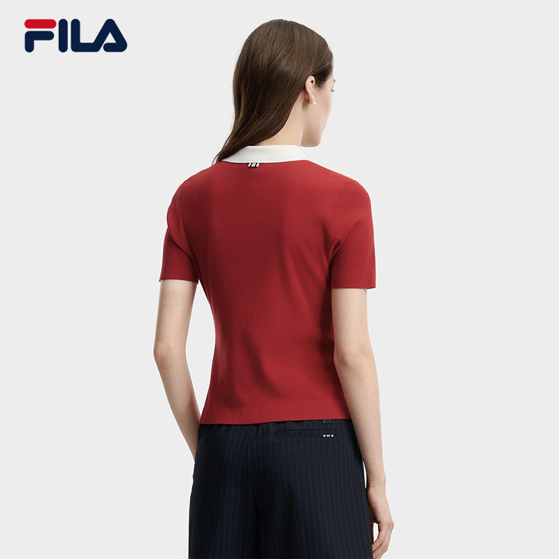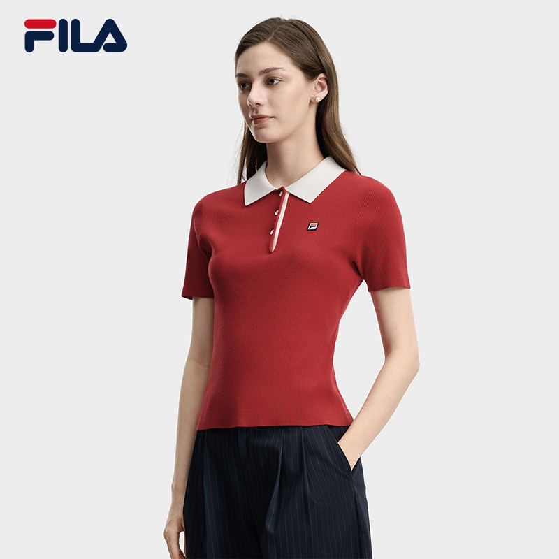 新款 FILA斐乐官方短袖 编织衫 女夏季 休闲轻薄polo上衣 运动百搭短装