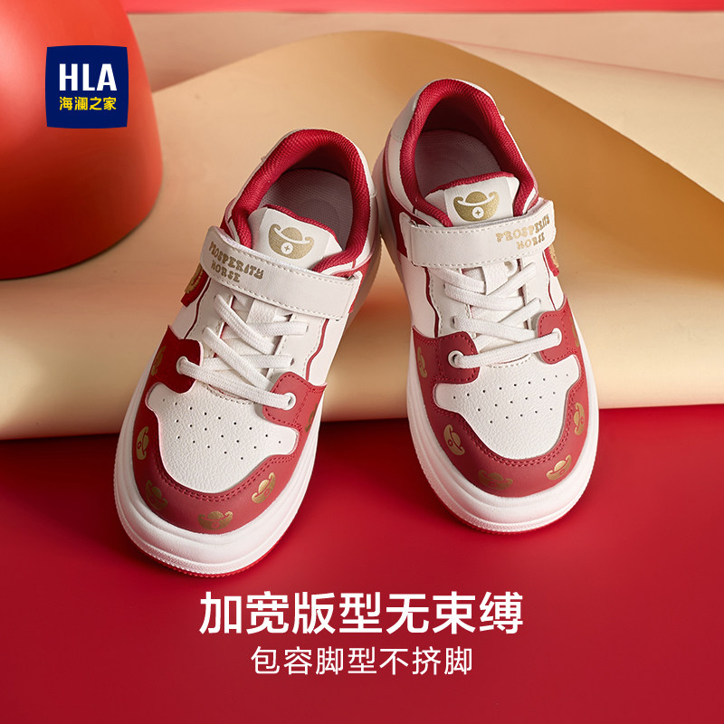 儿童板鞋 HLA 海澜之家童鞋 2026新款 女童 男童新年红色小学生运动鞋由