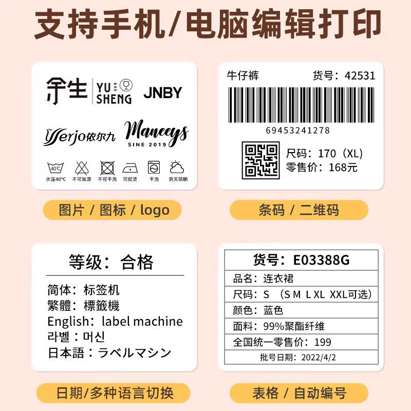 器女装 店衣服合格证价签打印机热敏不干胶贴纸智能蓝牙打价器 标签打印机小型手持吊牌价格打码 精臣B2Pro服装由