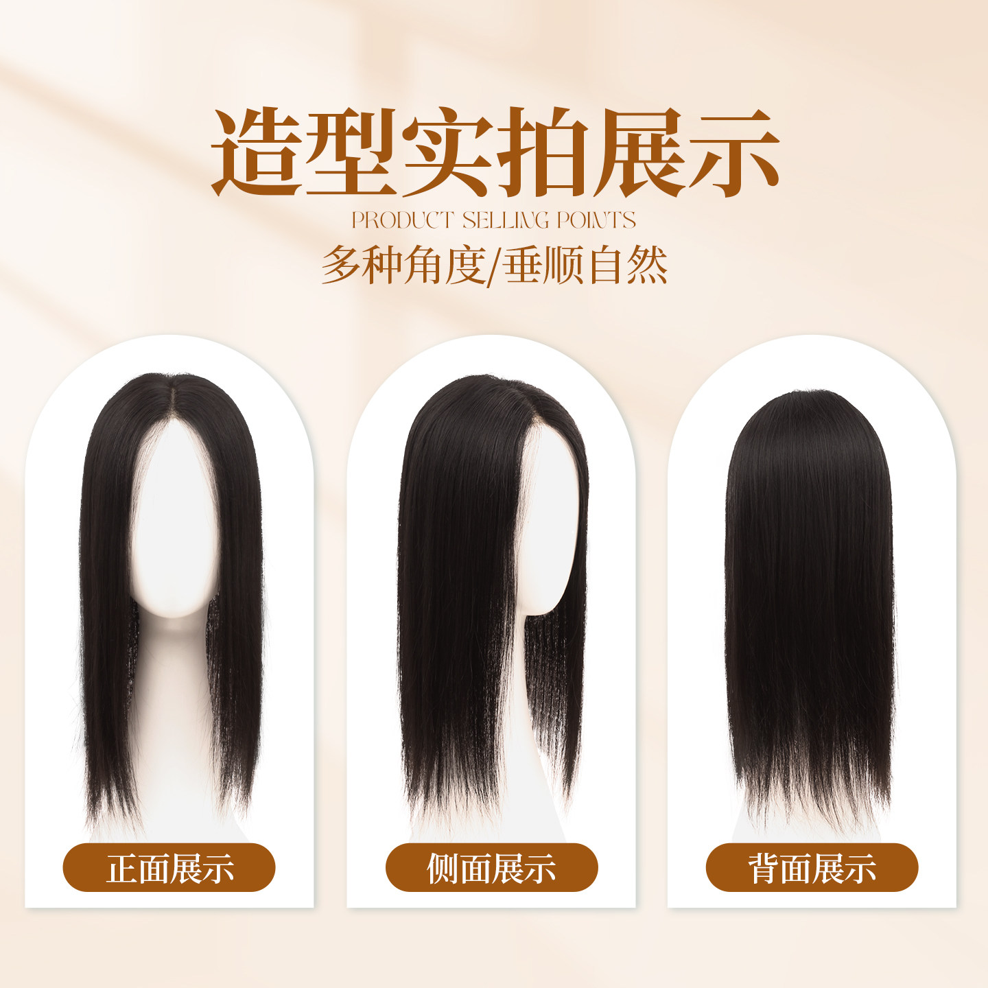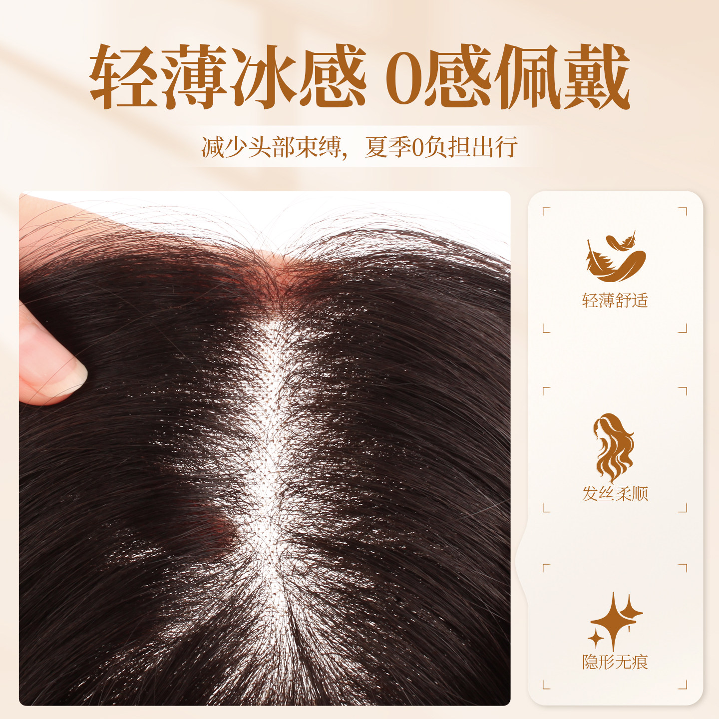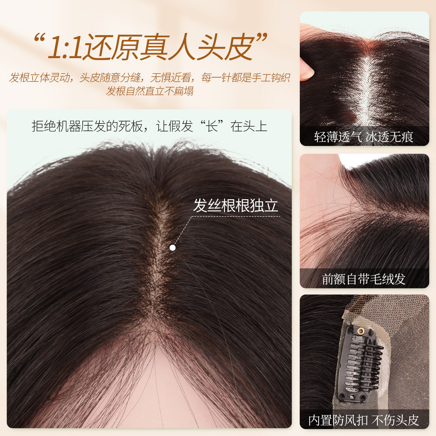 英琪假发片头顶蓬松增发遮白发全真发 无边液态发际线隐形发片由