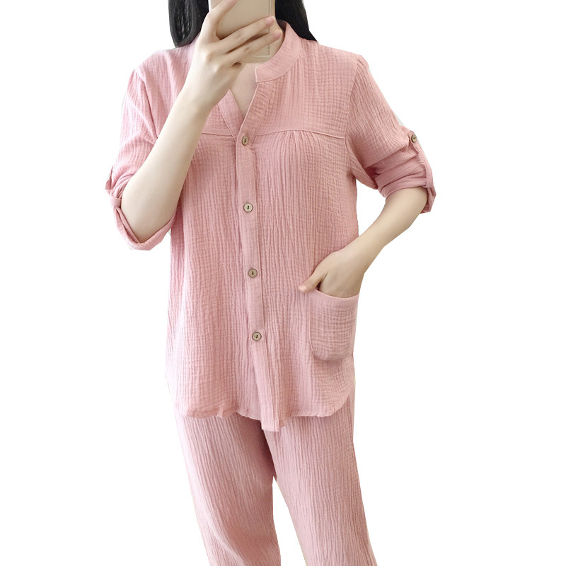 为您提供商品开衫 日系全棉纱布睡衣女士春秋季 纯棉水洗绉布长袖 家居服套装 薄款的详细介绍,