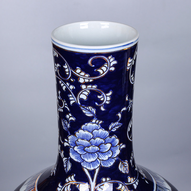 饰摆件天球瓶 景德镇陶瓷器青花瓷高档手绘描金花瓶现代仿古家居装