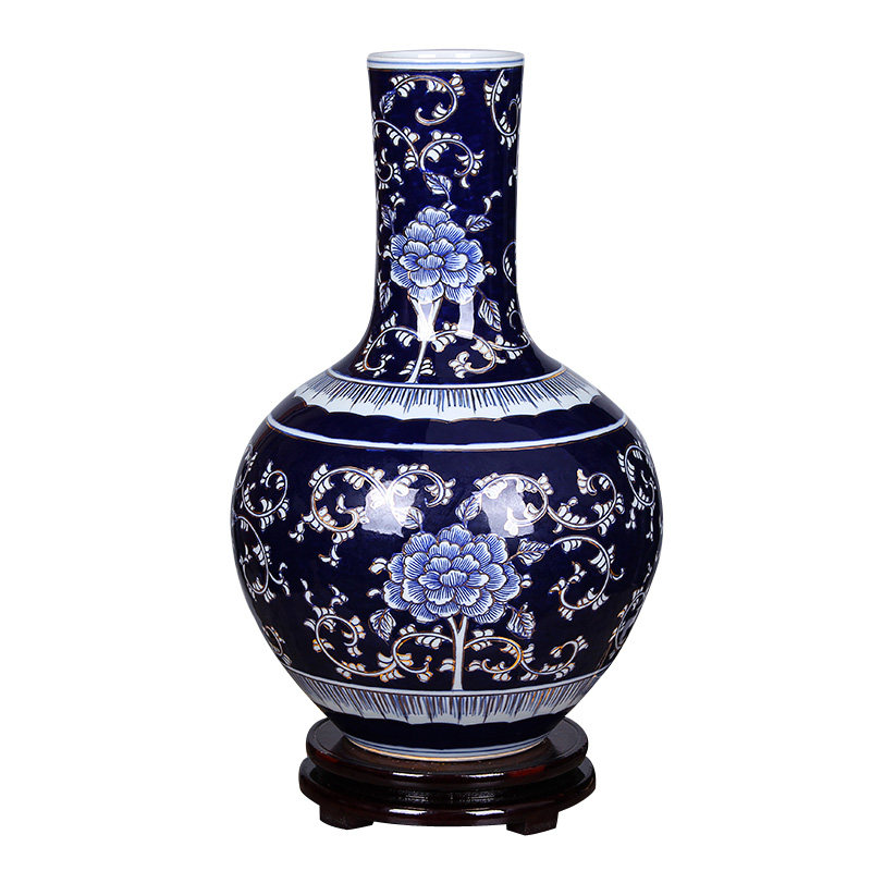 为您提供商品饰摆件天球瓶 景德镇陶瓷器青花瓷高档手绘描金花瓶现代仿古家居装的详细介绍,