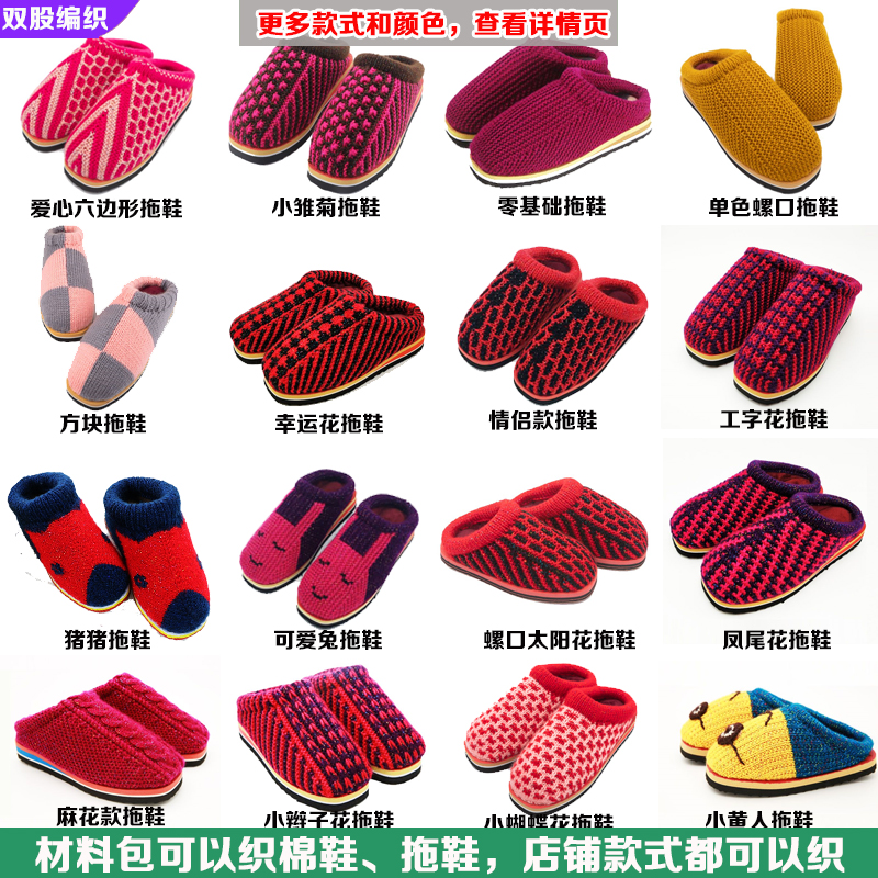 巧手女工编织坊手工编织棉鞋 帮鞋 底防滑毛线鞋 海绵内衬套餐diy 鞋由