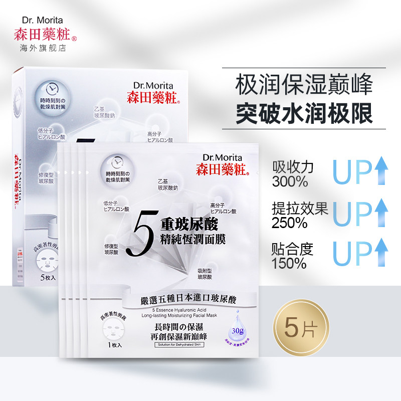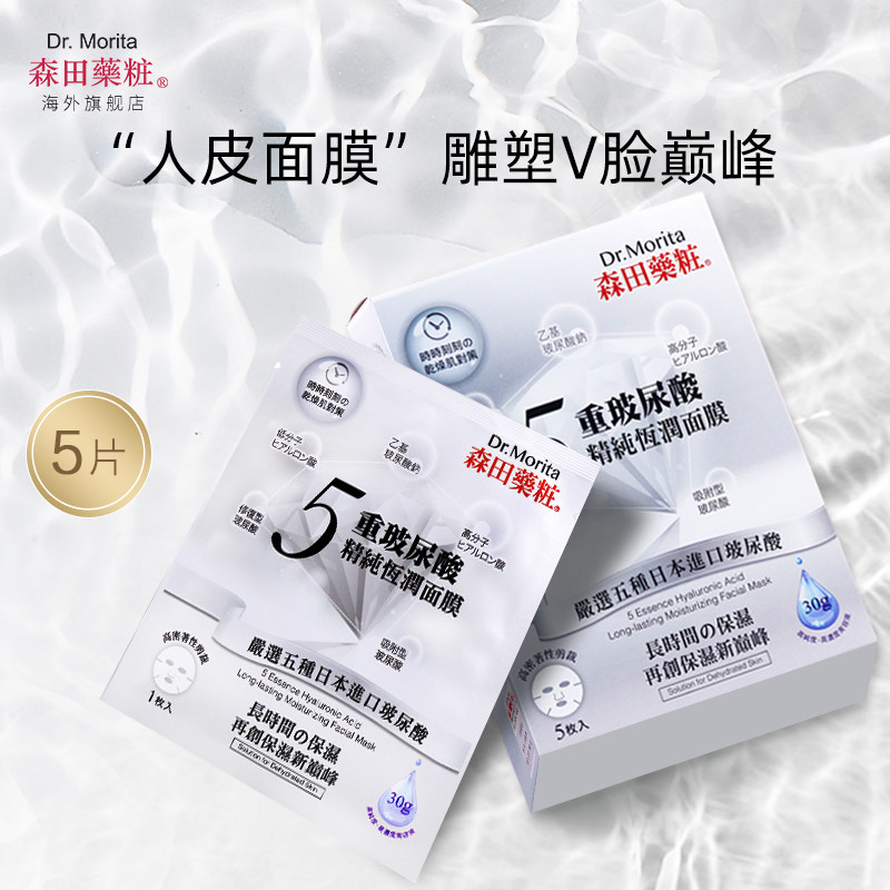 森田五重玻尿酸精纯恒润人皮面膜5片装 进口护肤 紧致提拉台湾原装