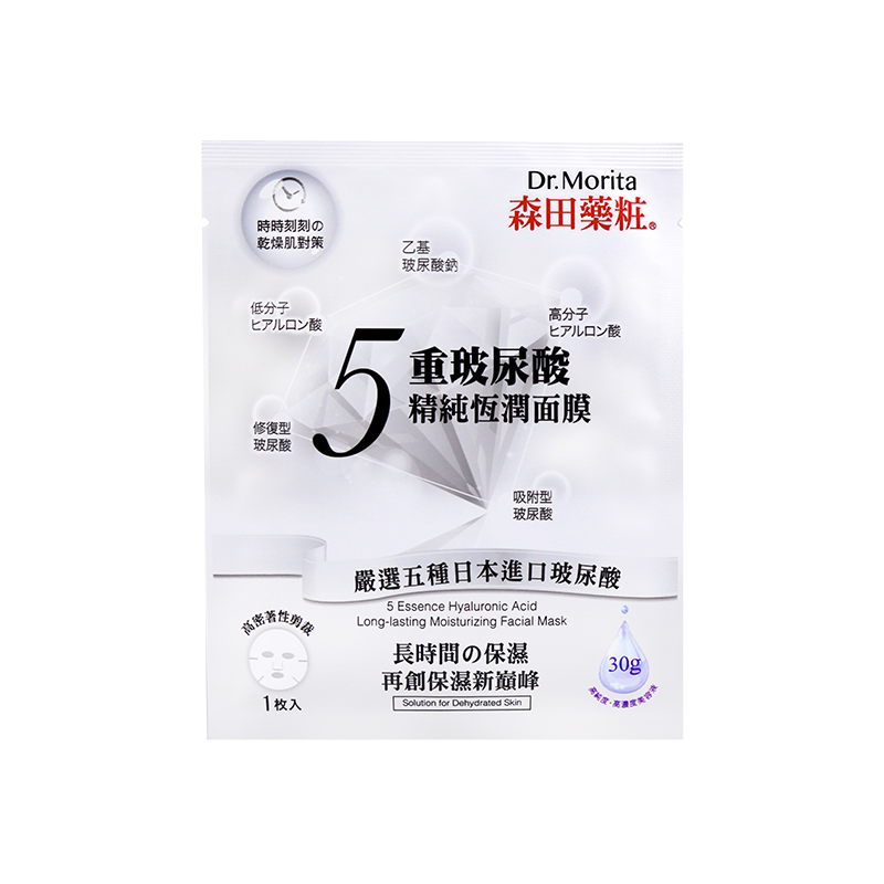 森田五重玻尿酸精纯恒润人皮面膜5片装 进口护肤 紧致提拉台湾原装由