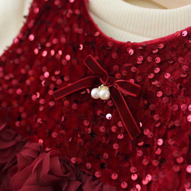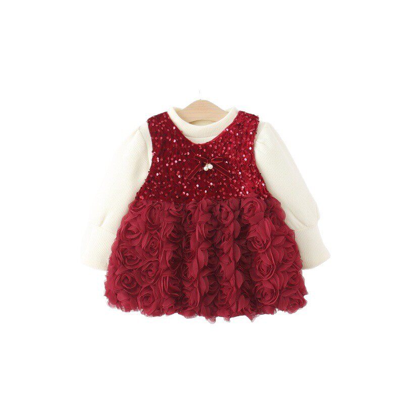 为您提供商品秋冬季 儿童女宝宝亮片玫瑰花苞公主裙子两件套加绒 女童裙套装 童装的详细介绍,
