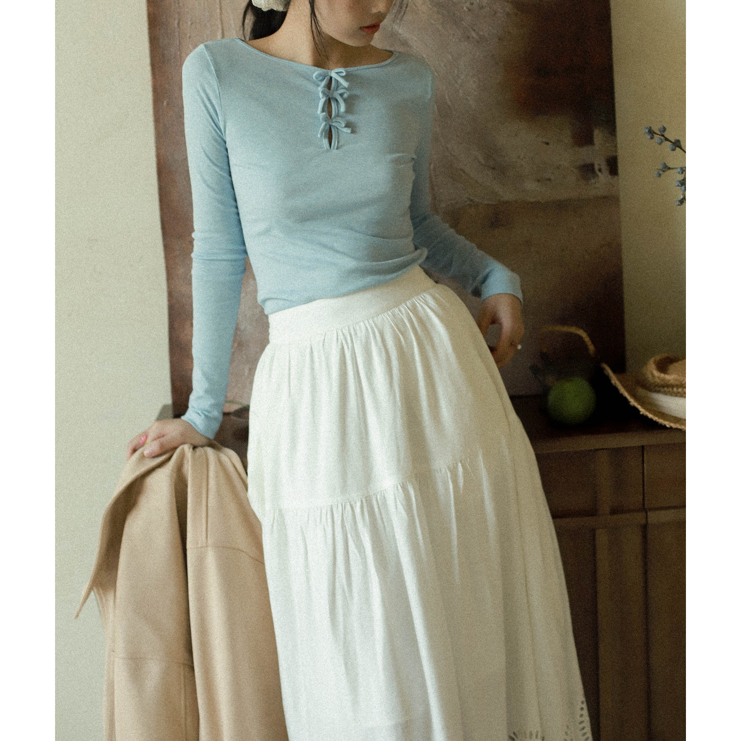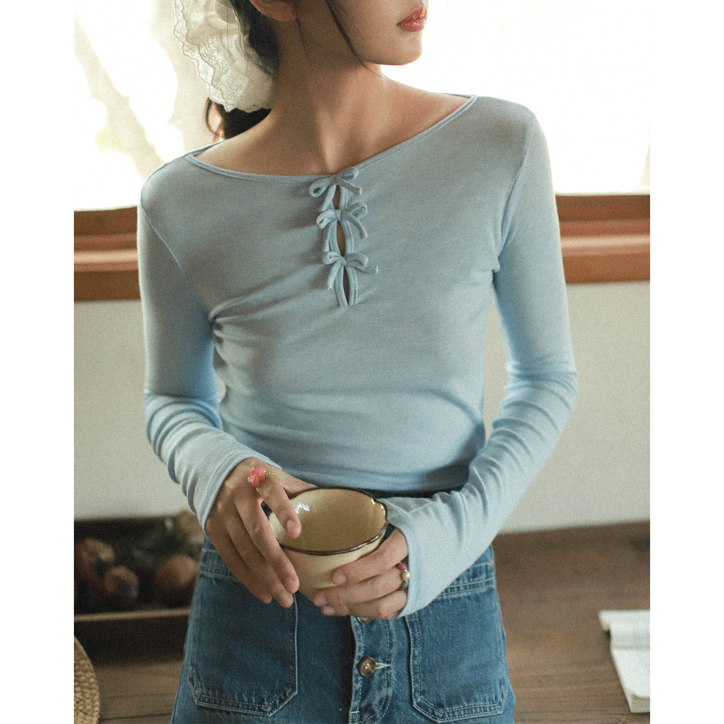 otherbela早秋新品 针织上衣 减龄清新蝴蝶结羊毛亲肤混色打底长袖由