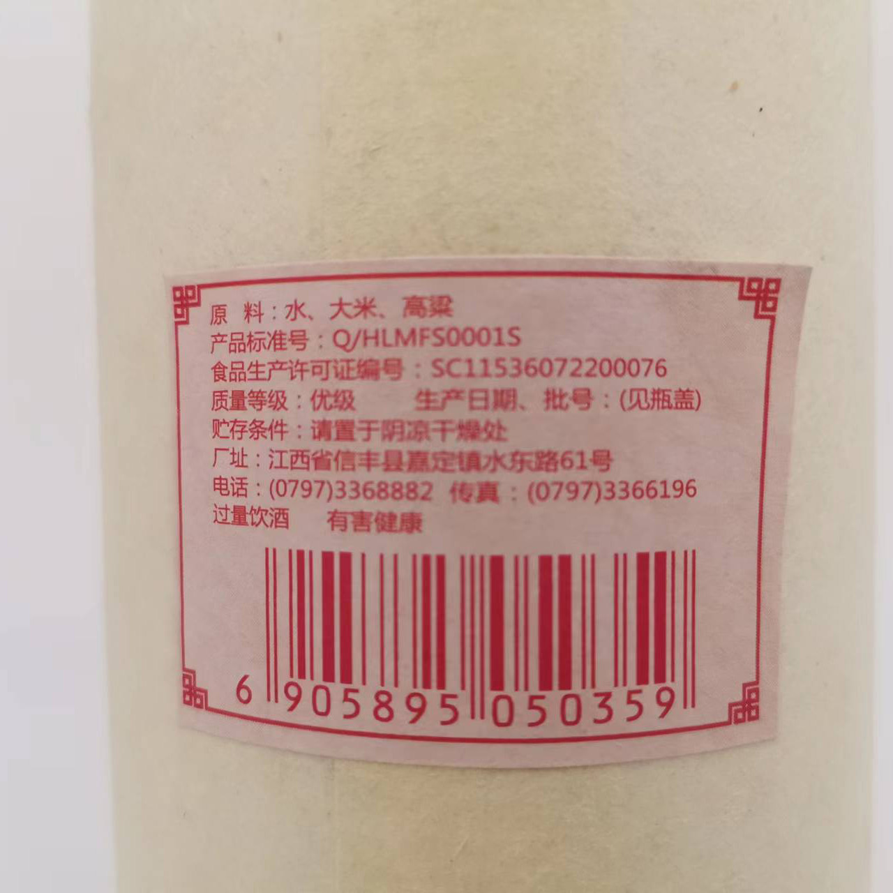 1瓶50度纯粮酒品鉴瓶装 2019年江西赣州信丰精品南山酒500ml 单瓶由