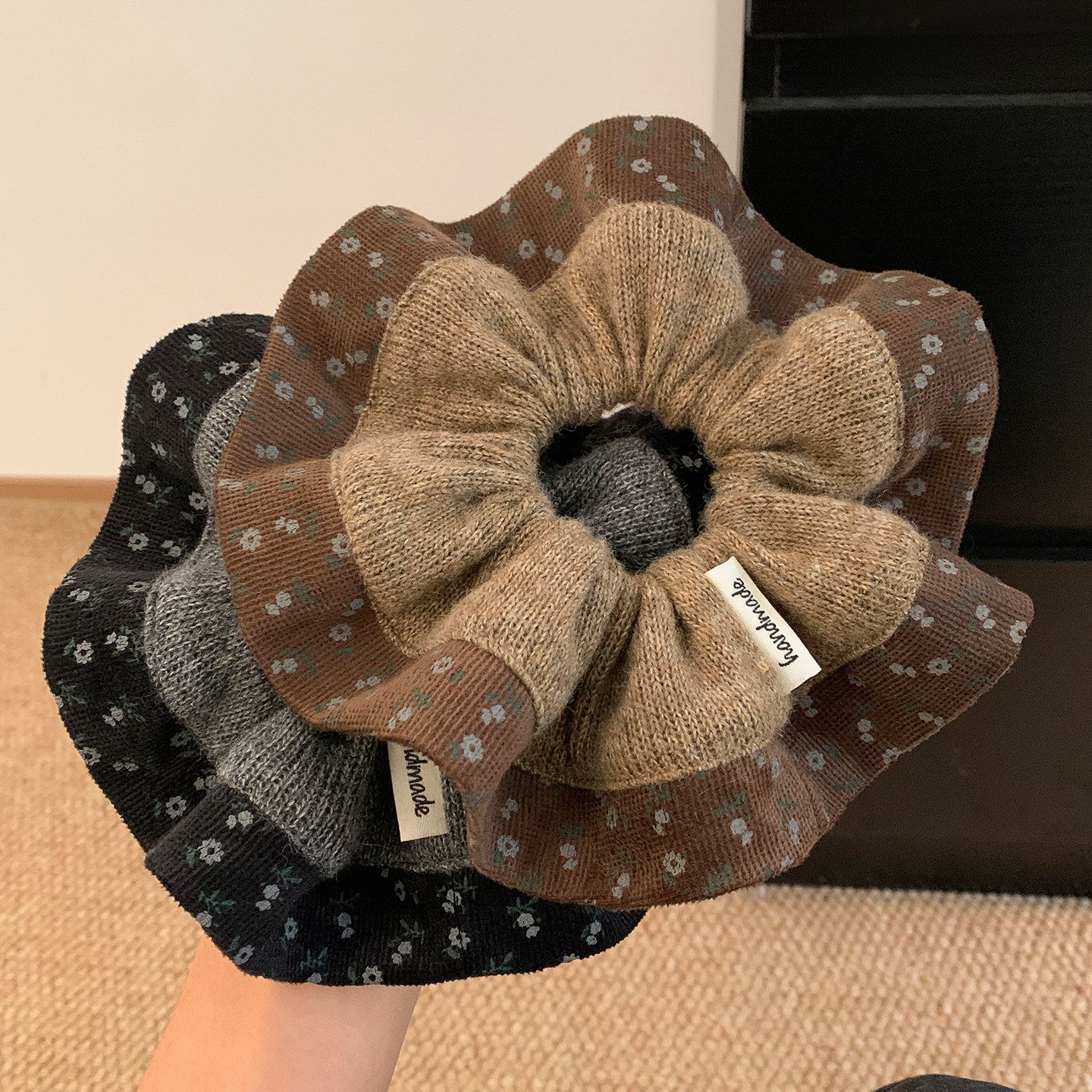 为您提供商品秋冬咖色毛线针织包边大肠发圈女高级感超大丸子头扎头发头绳头饰的详细介绍,