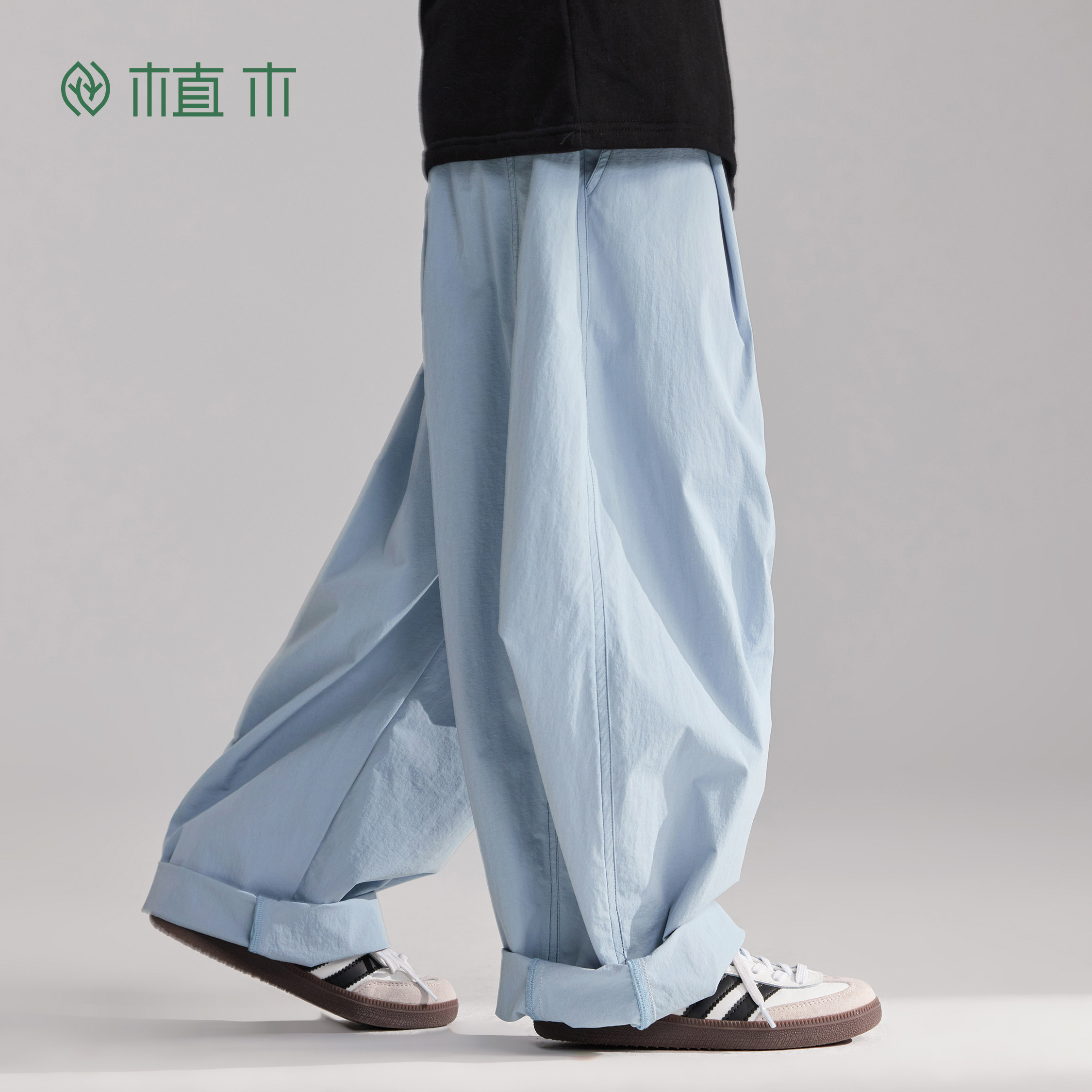 名创优品直筒长裤 2026新款 宽松阔腿休闲灰色运动卫裤 子男春夏季
