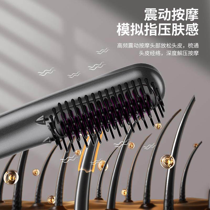 便携式 家用学生宿舍懒人卷发棒直发器 无线等离子震动按摩直发梳