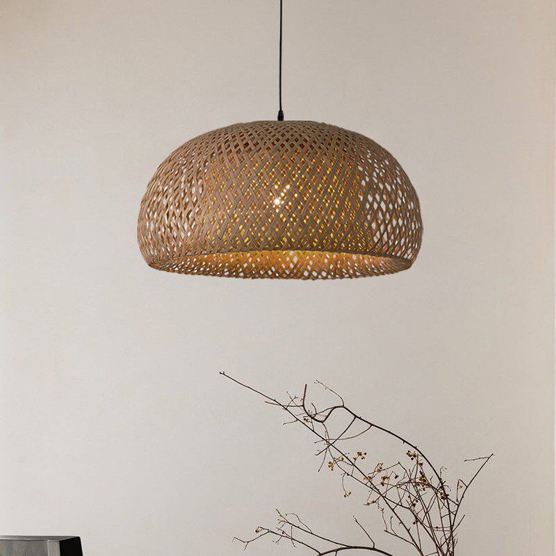 侘寂风竹编吊灯复古茶室禅意民宿中式 餐厅藤编灯具 卧室客厅日式