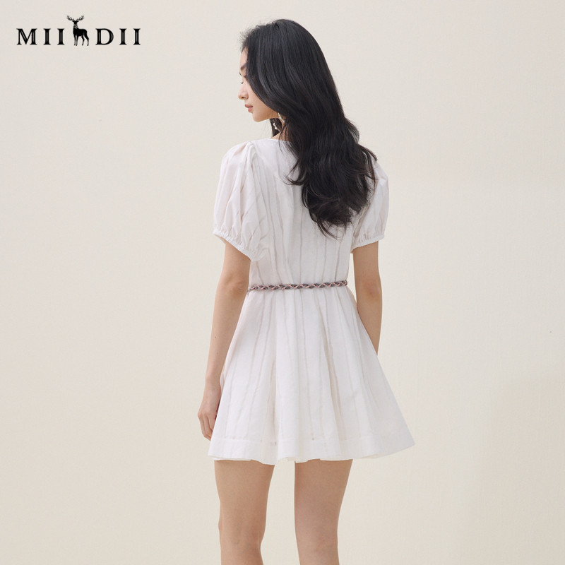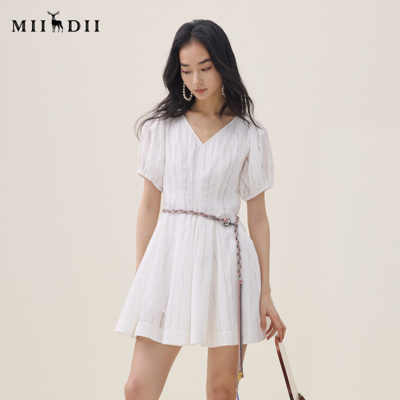 为您提供商品谜底V领连衣裙短袖 新品 泡泡袖 少女感编织腰带女262ML0530 2026夏季的详细介绍,