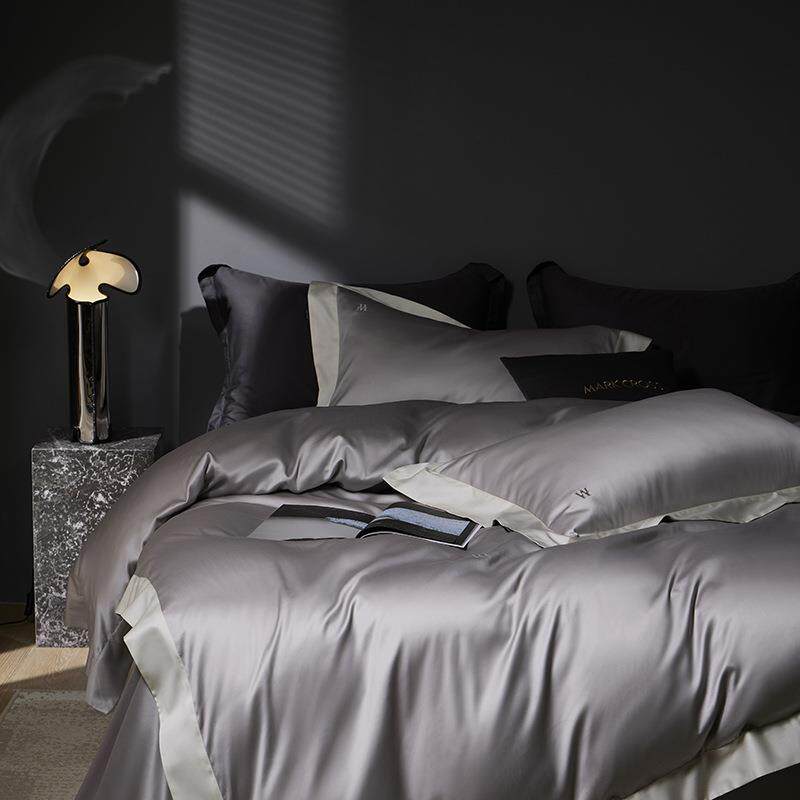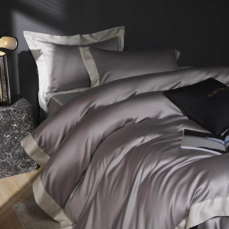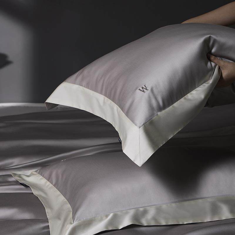 棉四轻件套棉全品棉纯丝滑纯色被套床上用 高端奢40支双股长绒Mlc