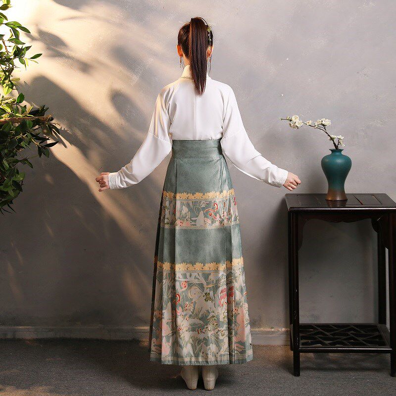 古装 改良日常穿搭 女大童上衣国风成人款 明制汉服女绿色马面裙套装由