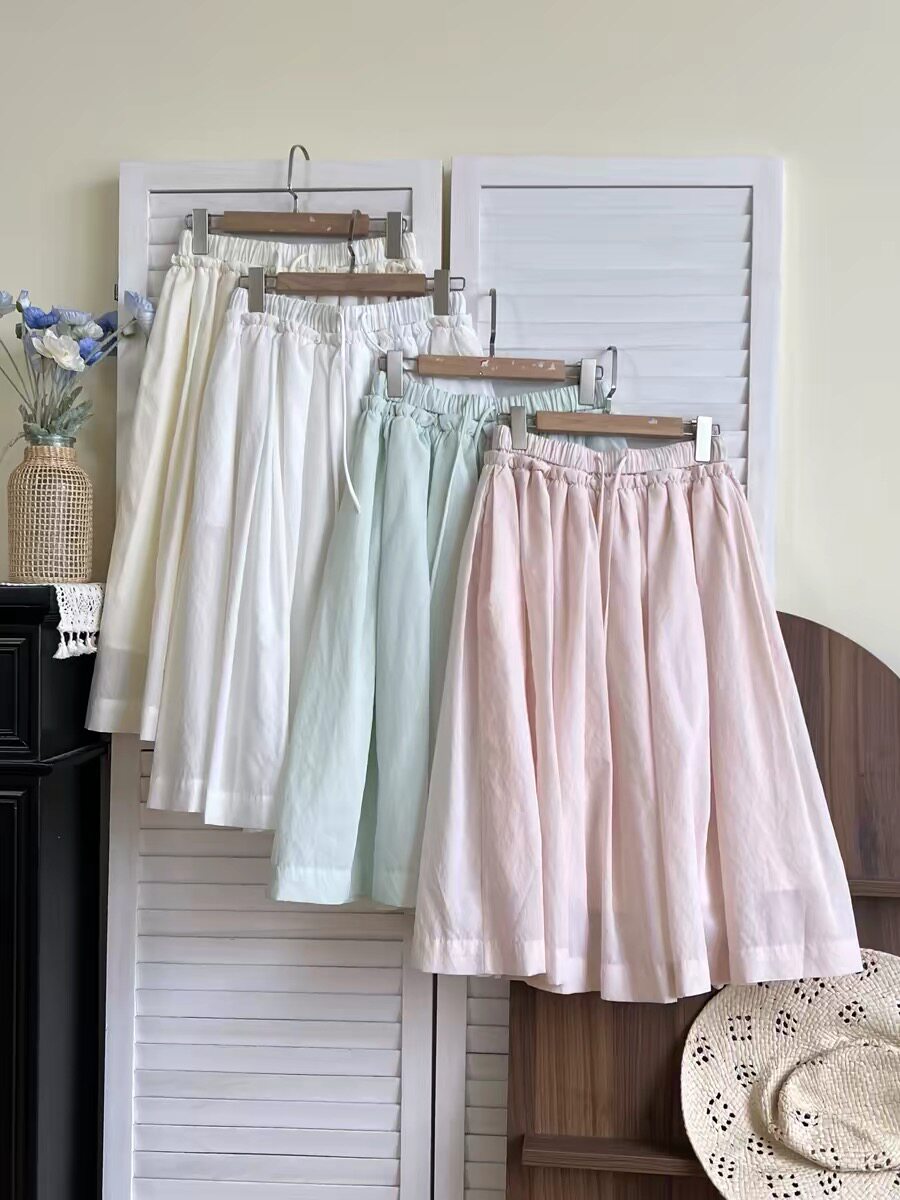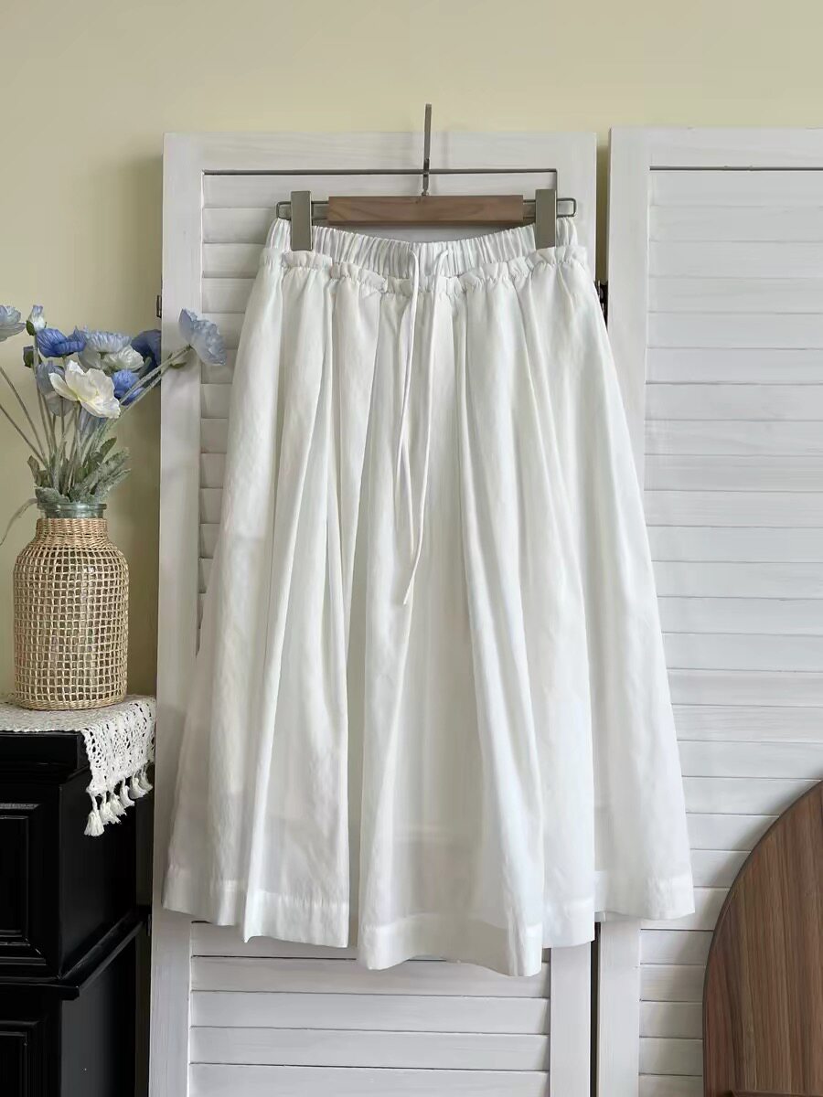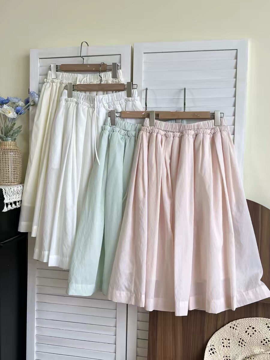 全松紧腰系带花边捏褶半身裙有内衬纯色百搭显瘦裙 茜茜女孩夏季由