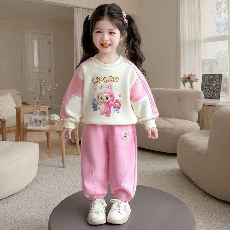 为您提供商品女童卫衣春秋款 儿童洋气小女孩可爱卡通两件套 黄色拼接拉布布套装的详细介绍,