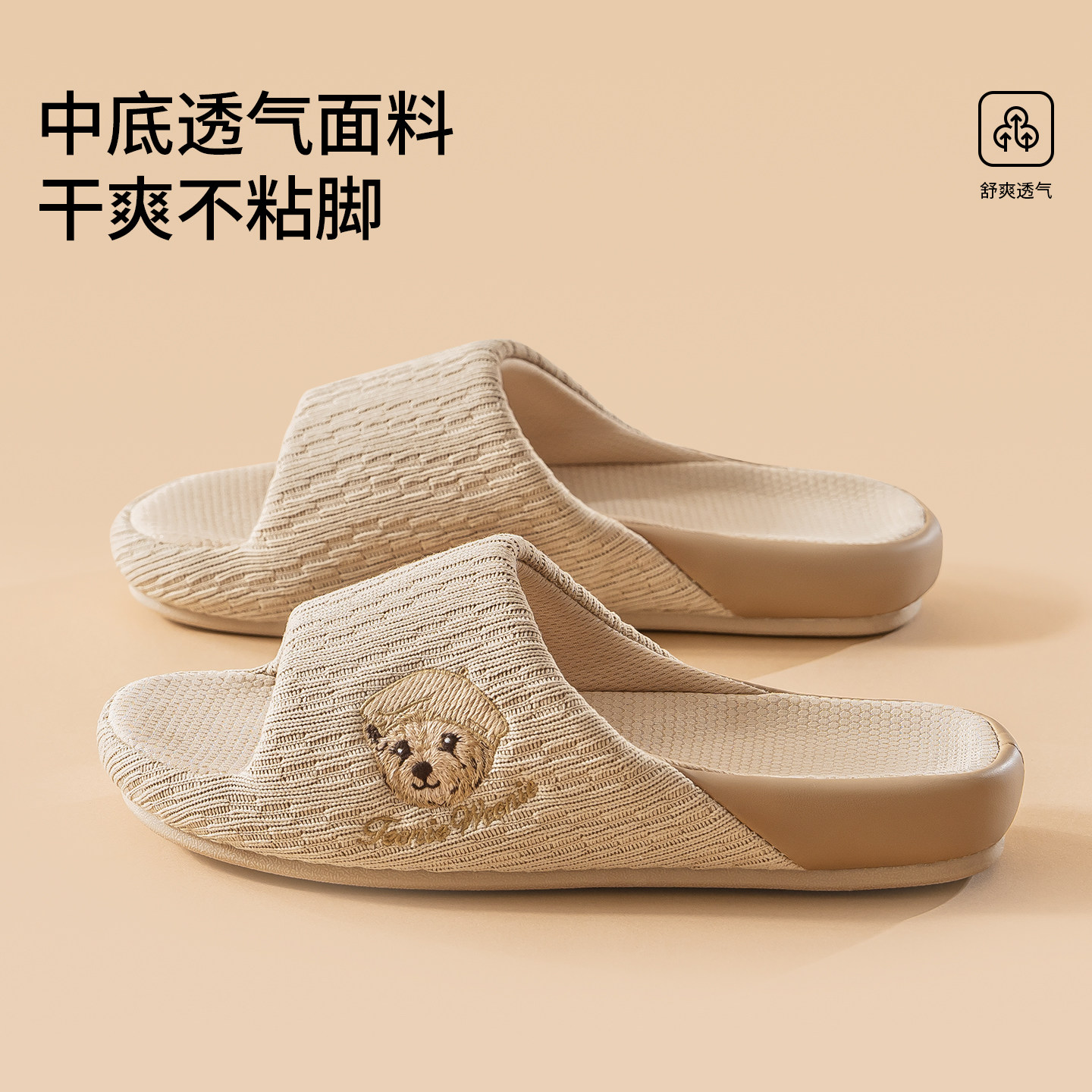 鞋 子 男女情侣2026新款 TeenieWeenie小熊刺绣室内居家防滑棉麻拖鞋