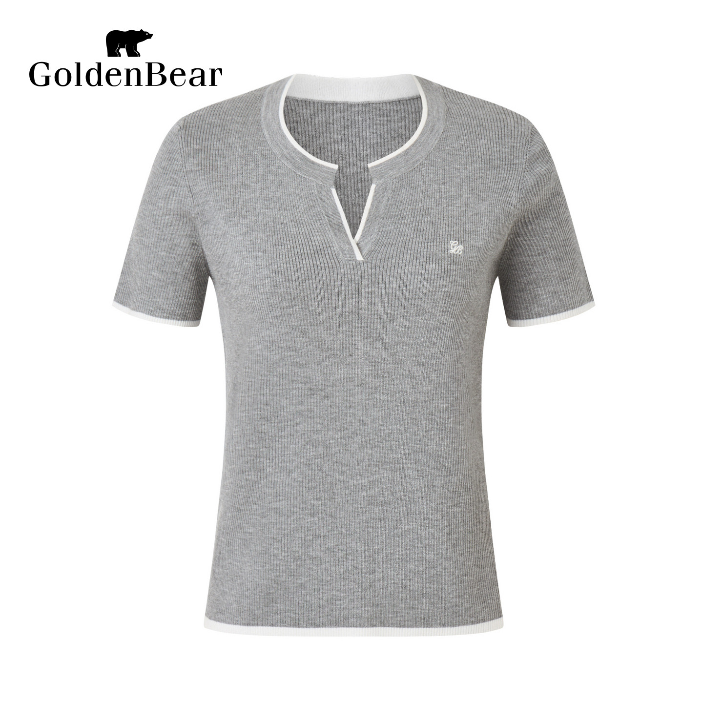 BEAR GOLDEN 含绵羊毛 针织衫 2026春夏新品 V领短袖 金熊女装