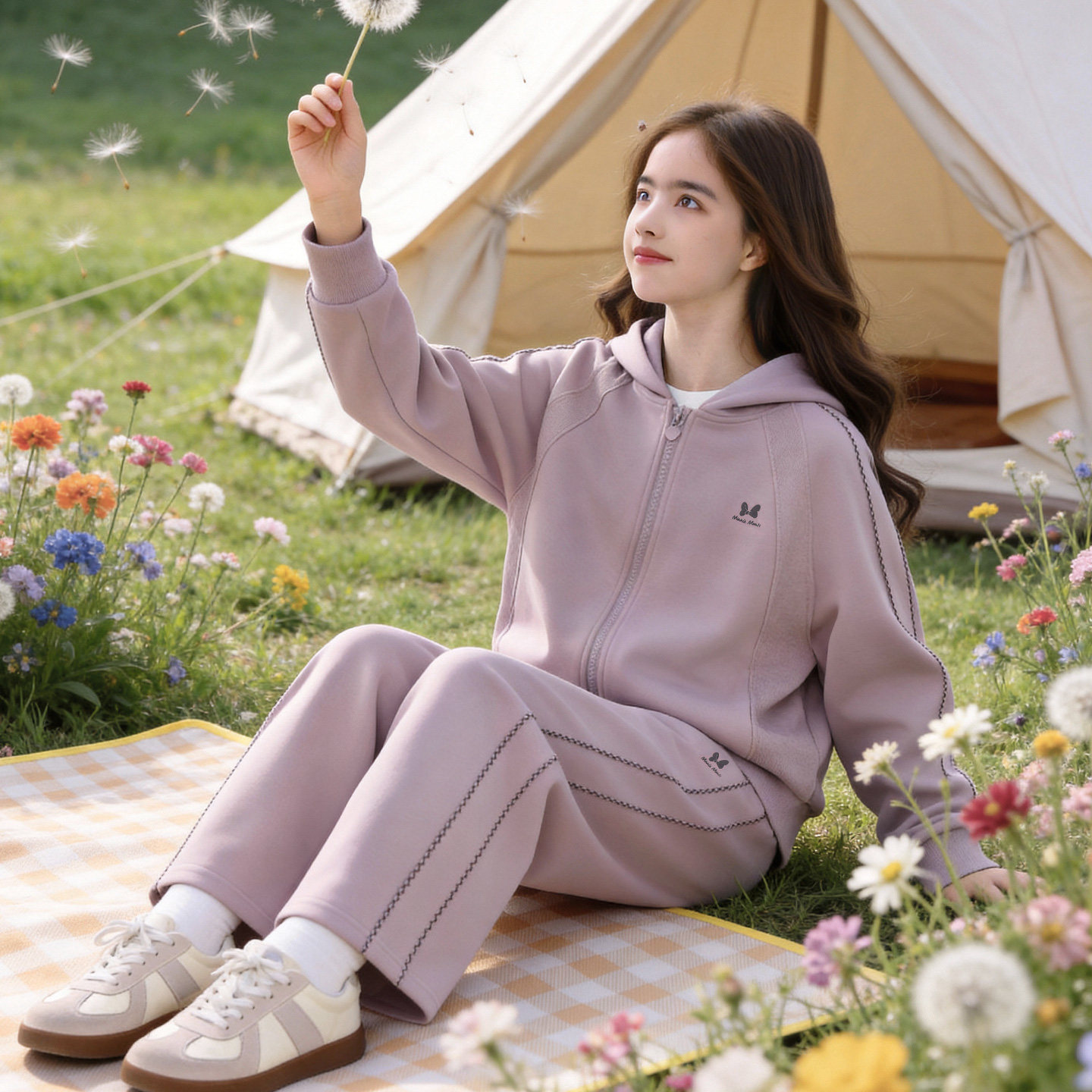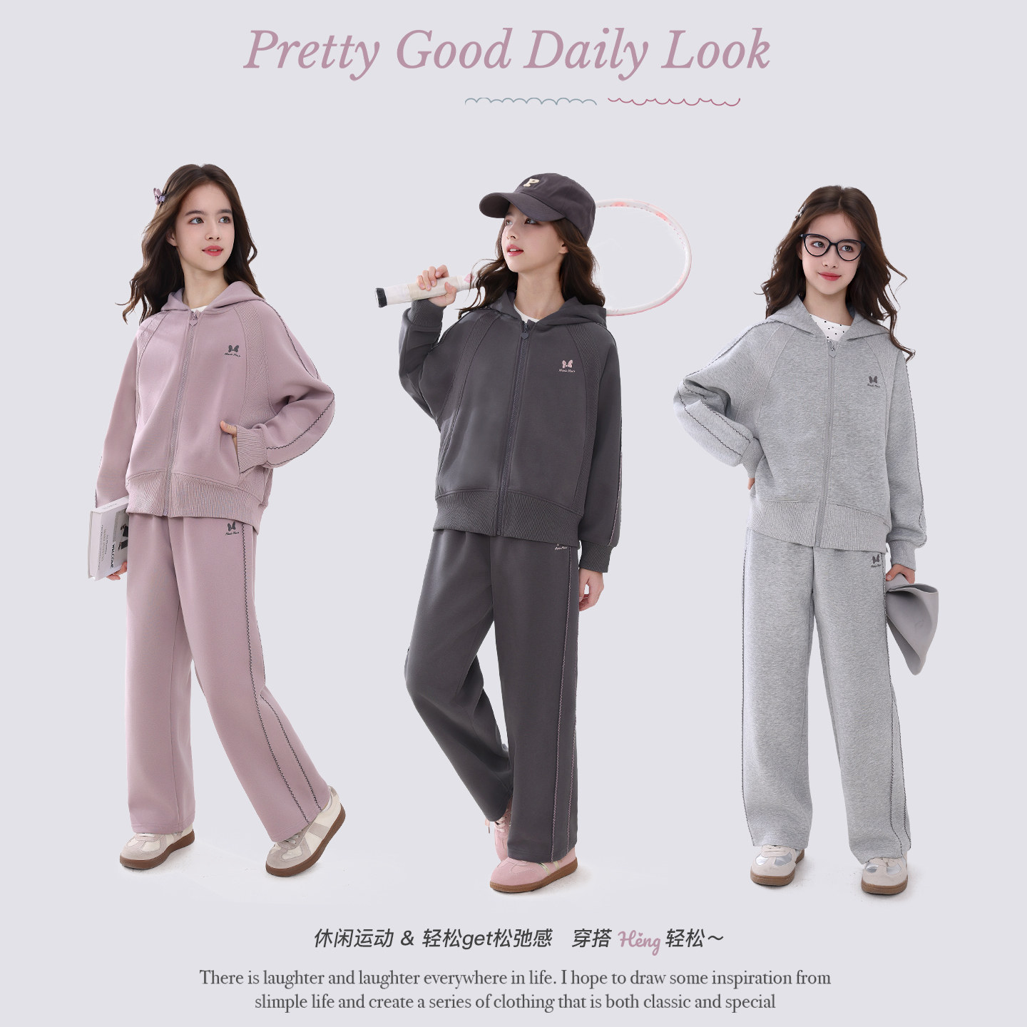 迪士尼女童套装 2026新款 洋气儿童连帽外套直筒裤 青少年两件套 春季