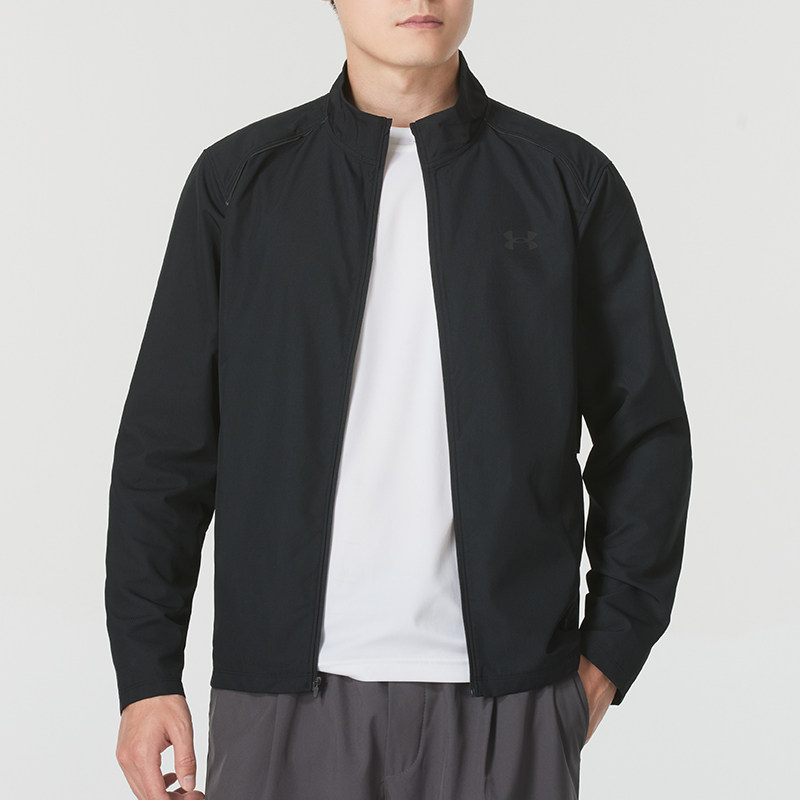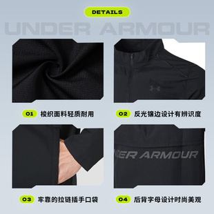 安德玛官方立领梭织夹克男装 新款 黑色薄款 外套跑步健身训练服 春季由