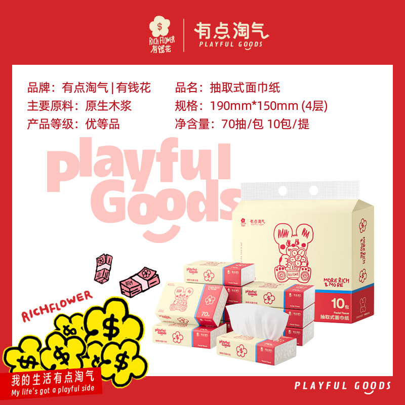 新品 有点淘气有钱花抽纸4层加厚M码 优等品10包 提 试用
