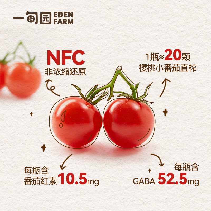 一甸园NFC100%樱桃小番茄汁无添加含番茄红素GABA210mL 限定款由