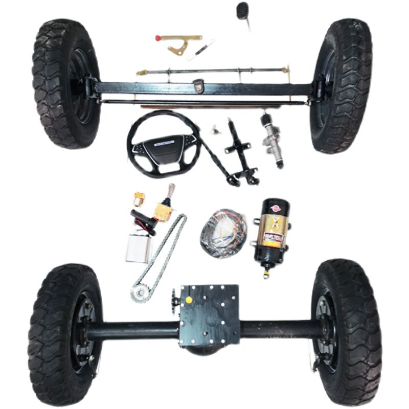 1.5吨电动车后桥总成全套 配件大全 四轮车前桥转向方向盘电机改装由