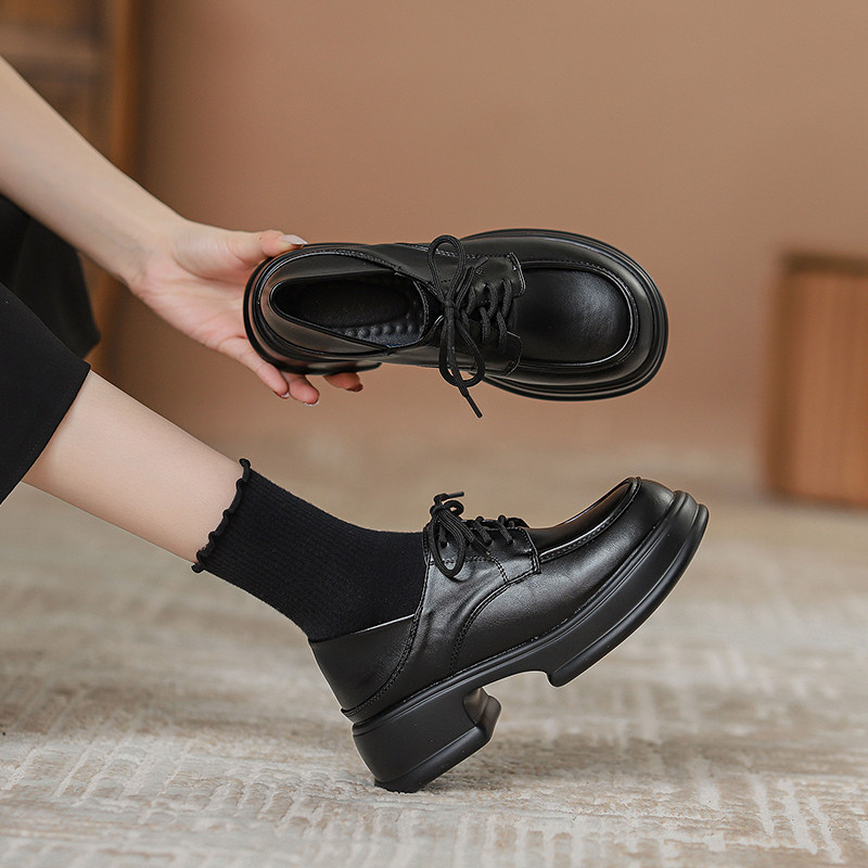 女2026春季 真皮厚底乐福鞋 特价 系带单鞋 学院英伦风小皮鞋 新款 断码
