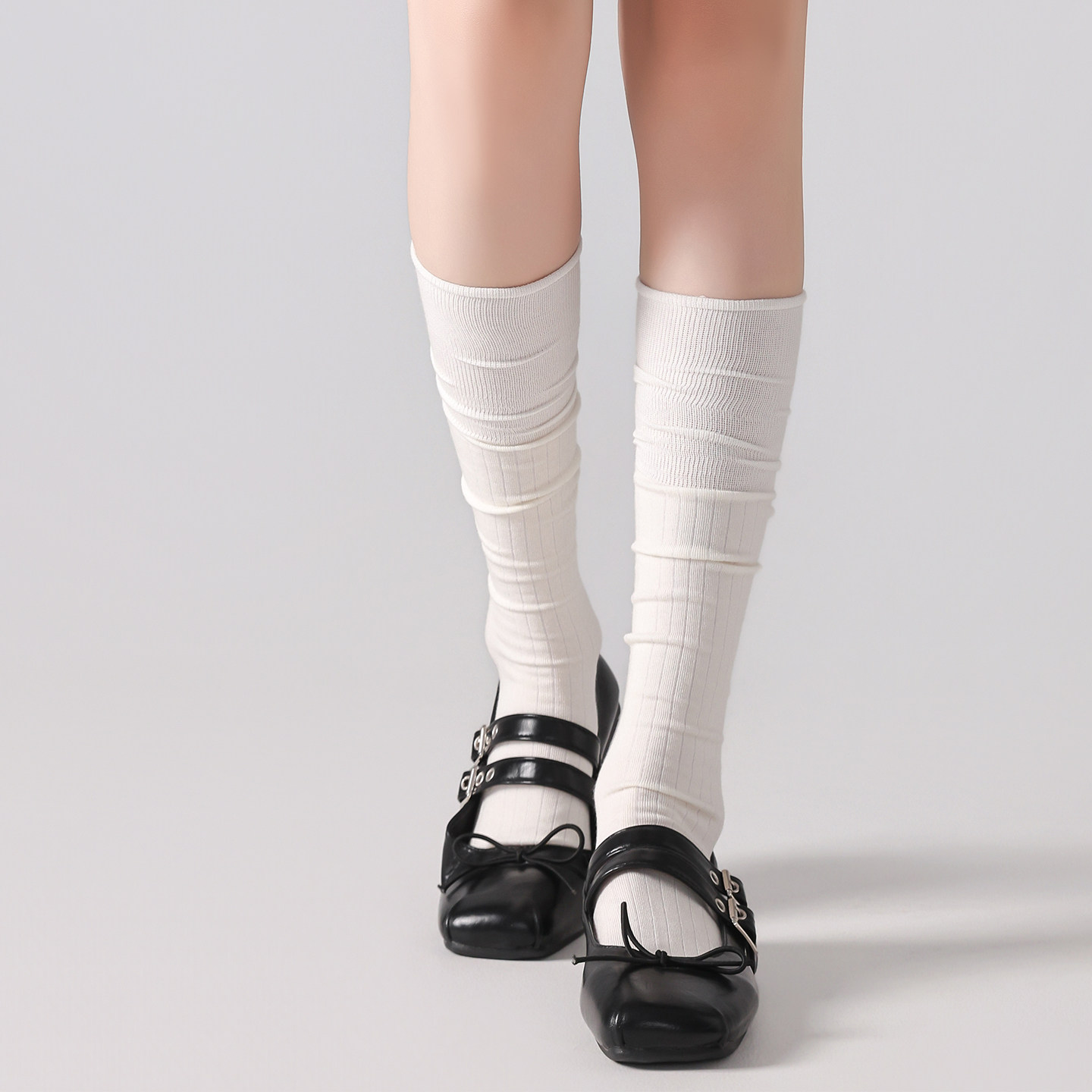 袜子女款 薄款 100%全棉中筒白色堆堆袜春款 抗菌防臭长筒袜 纯棉夏季