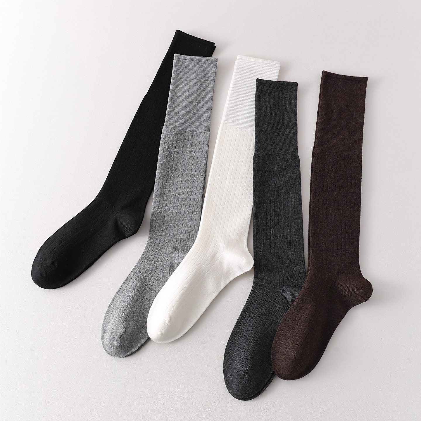 ins潮学院风微压显瘦小腿袜 美拉德咖色松口长筒袜子女生秋天韩版