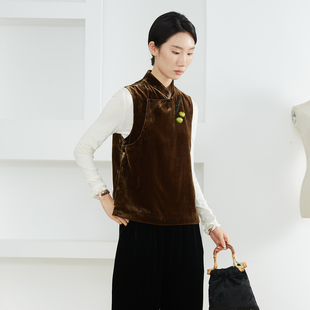 特惠 马夹上衣春 丝绒立领斜门襟暗扣真丝国风马甲女桑蚕丝新中式
