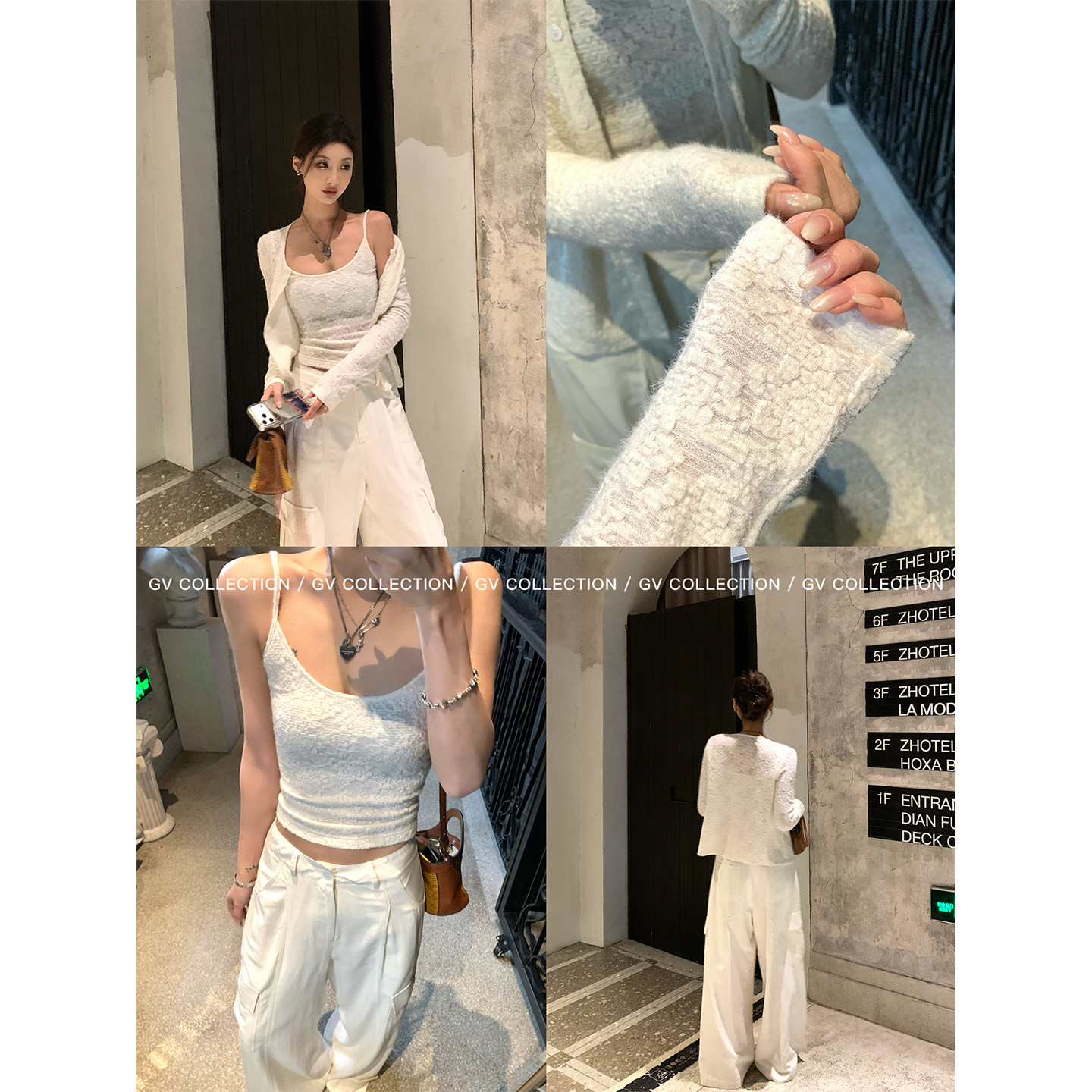 为您提供商品GV大白哥 磨毛蕾丝吊带开衫 外套两件套装 百搭上衣女夏 白茶套系的详细介绍,