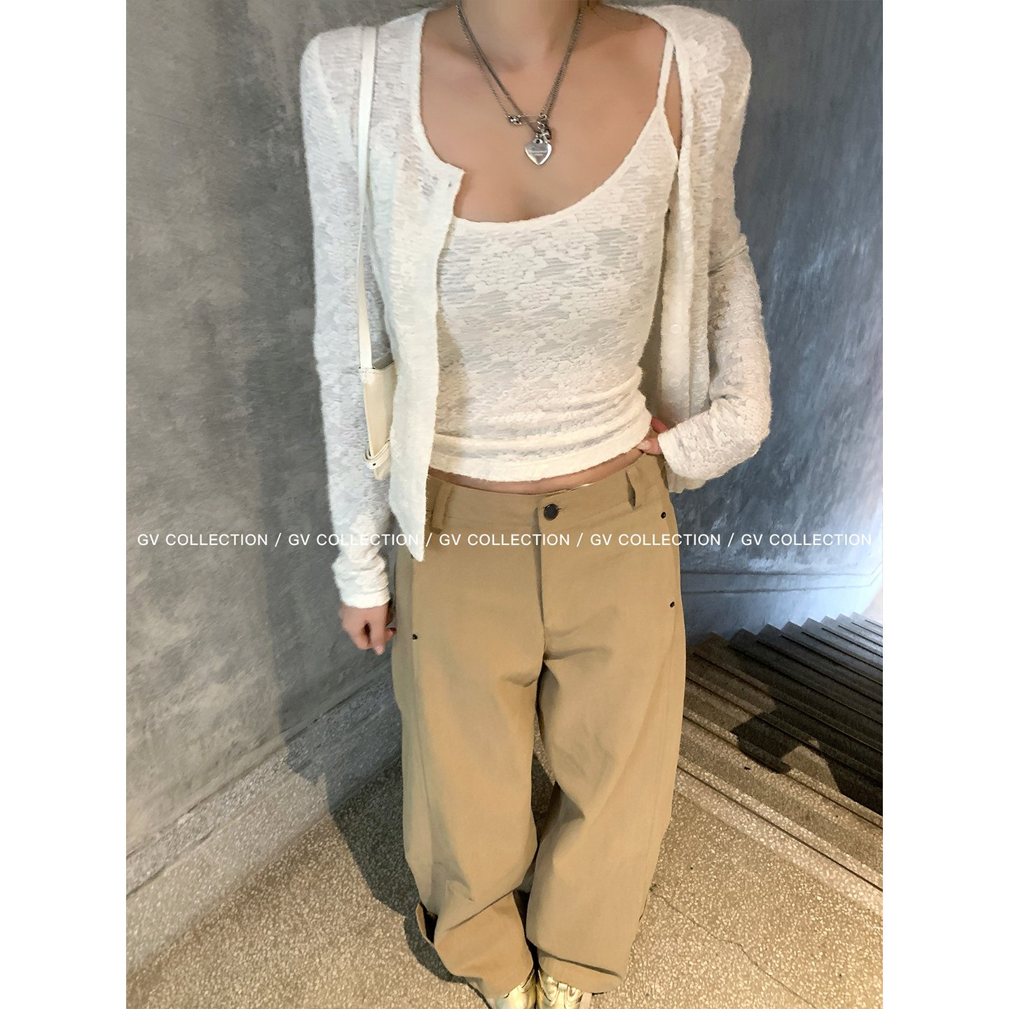 GV大白哥 磨毛蕾丝吊带开衫 外套两件套装 百搭上衣女夏 白茶套系由