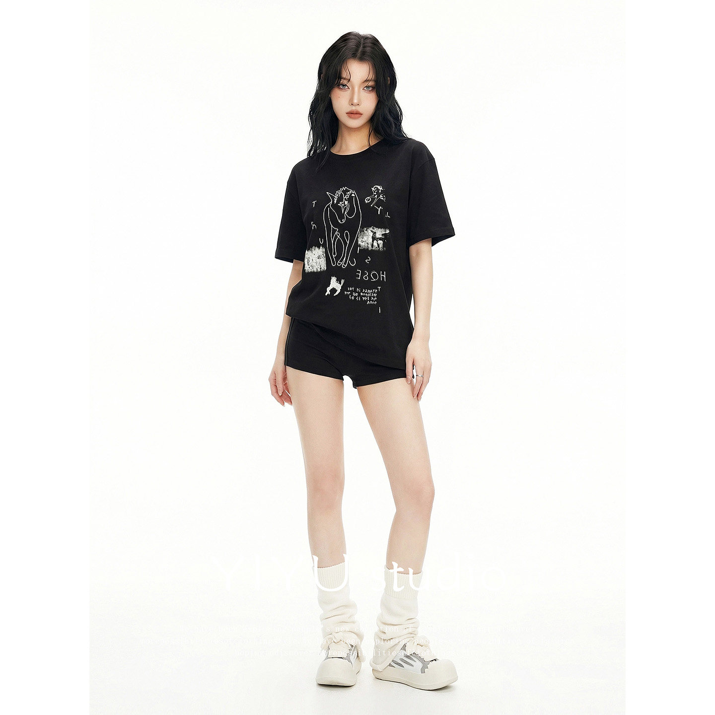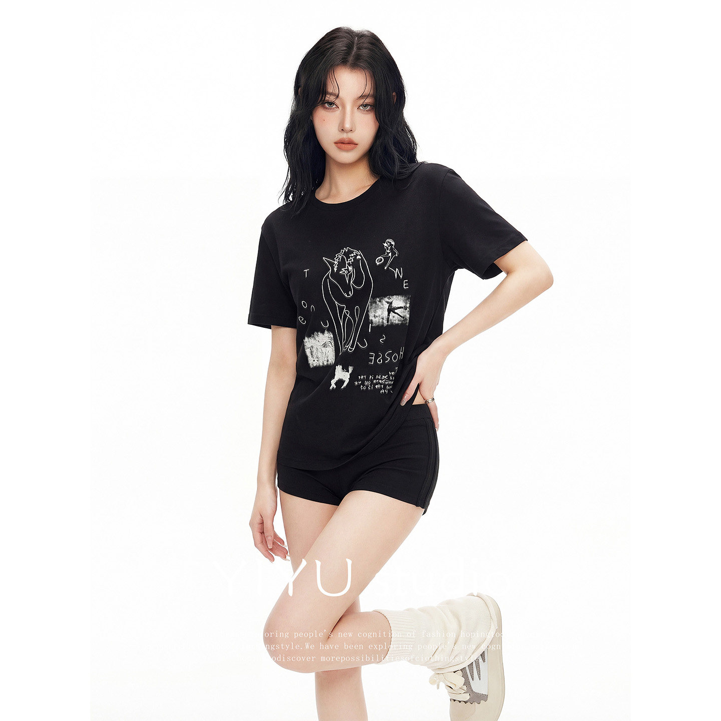T恤女夏宽松显瘦休闲短裤 伊予YiYu 手绘印花短袖 辣妹穿搭 套装由